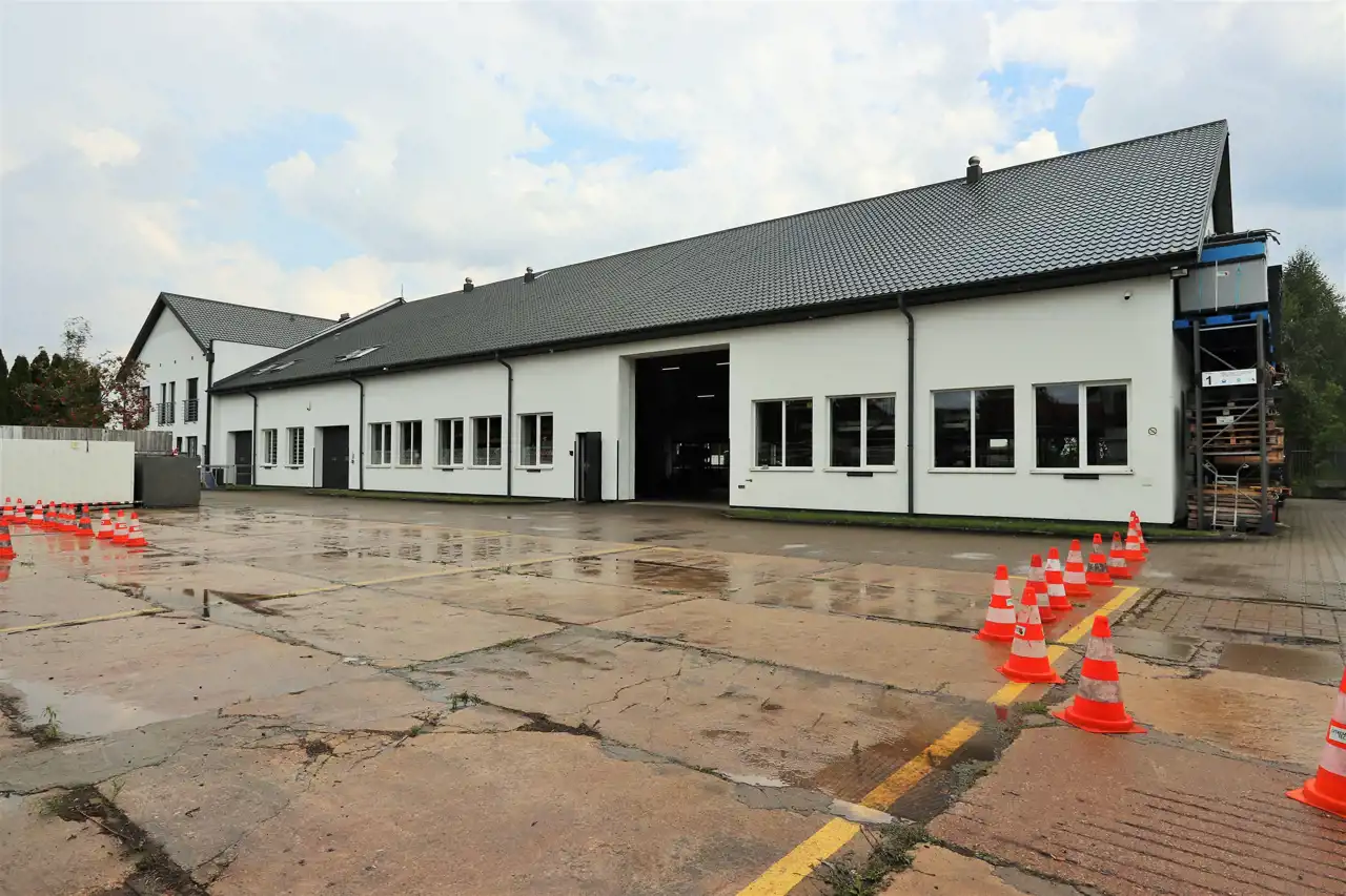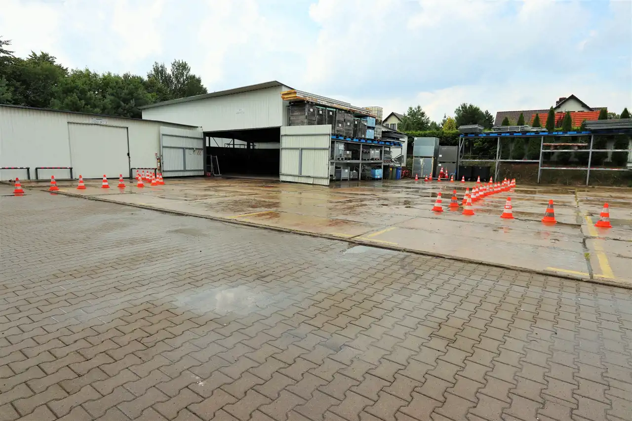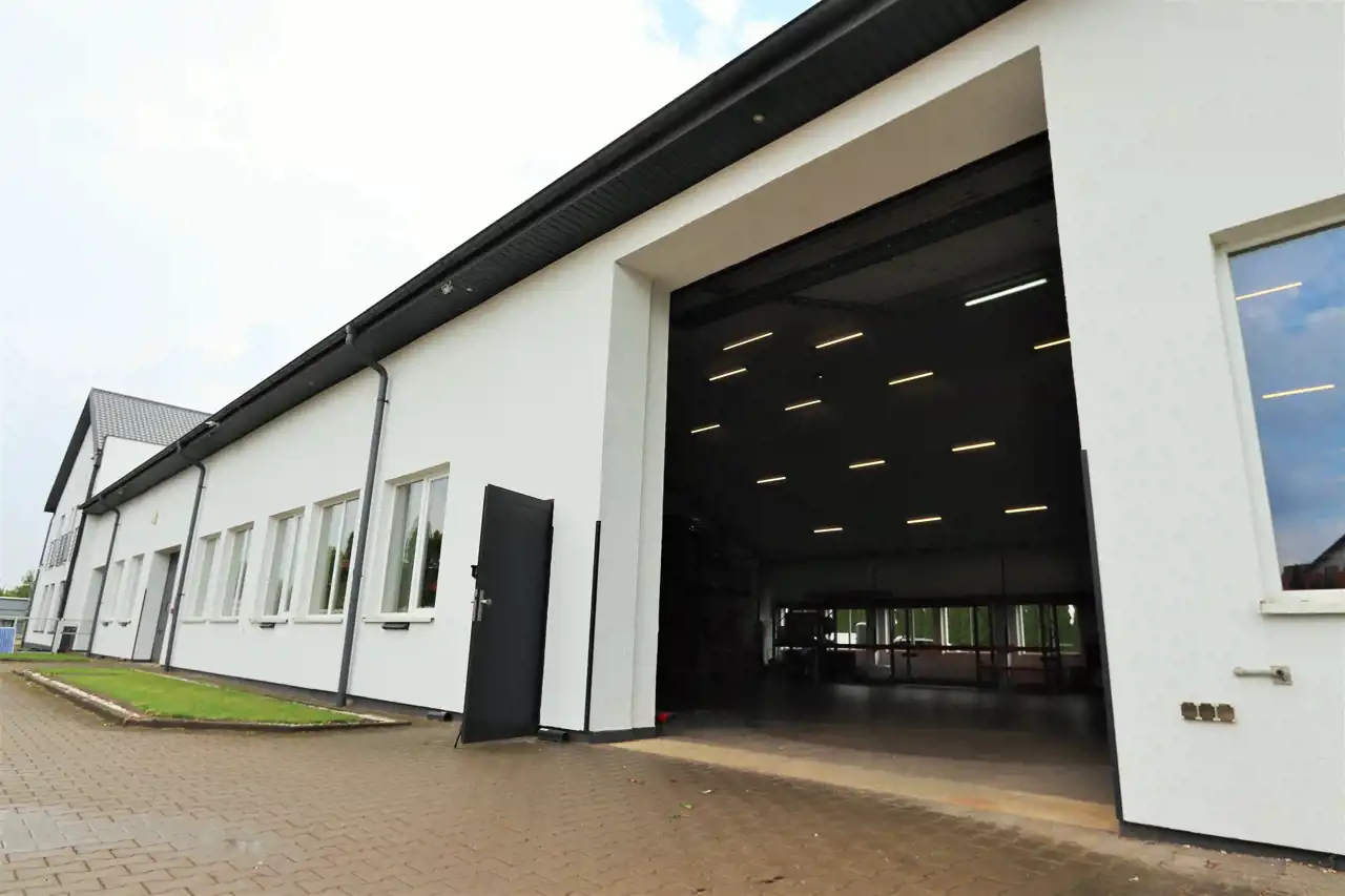 Hala wyposażona w dwie automatyczne bramy wyjazdowe o wysokości 4,5 m