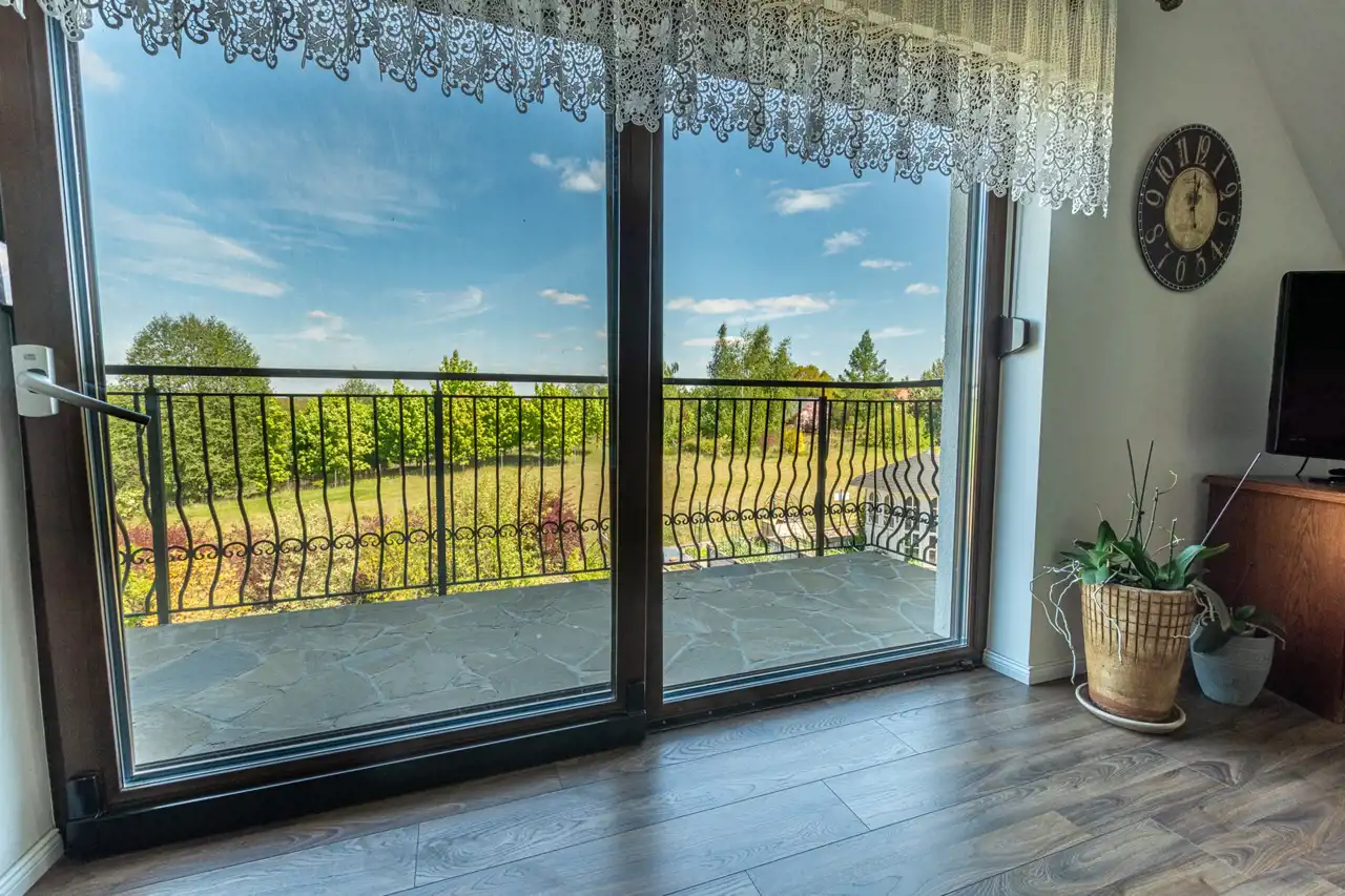 Okna pcv trzyszybowe, dodatkowo w oknach rolety zewnętrzne - na parterze sterowane elektrycznie, natomiast na pierwszym piętrze sterowane mechanicznie. Z dodatkowego wyposażenia odkurzacz centralny, filtr do wody, kominek opalony drewnem z rozprowadzeniem ciepła.