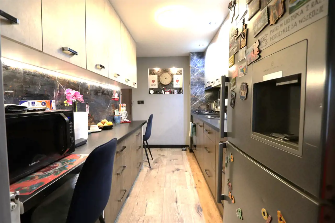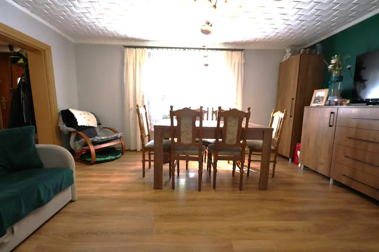 Nieruchomość została podzielona na dwa niezależne mieszkania, co czyni ją idealną propozycją zarówno dla dużej rodziny, jak i dla inwestora