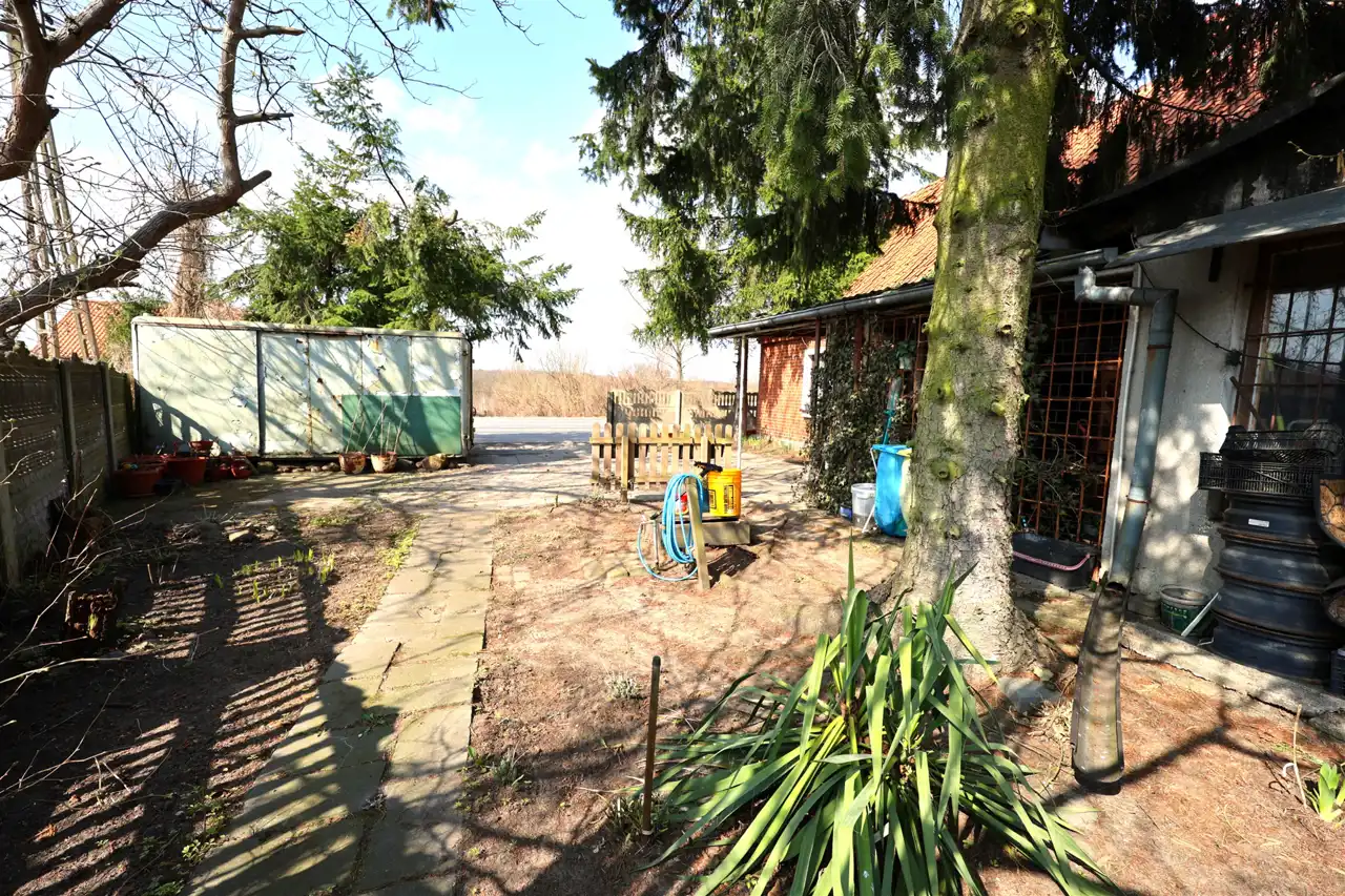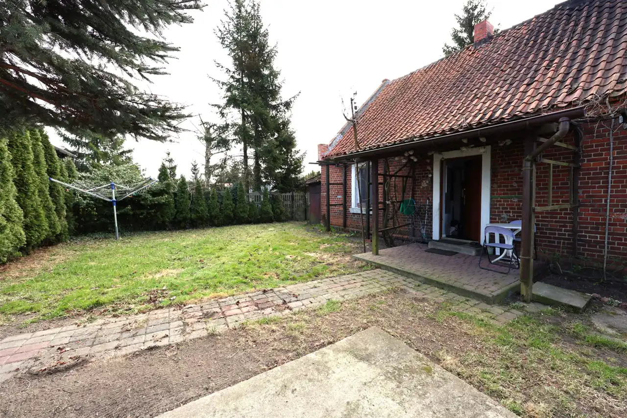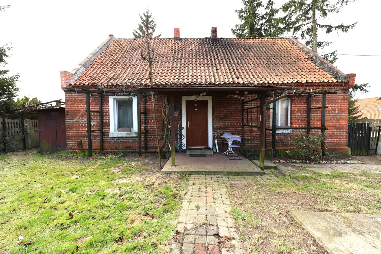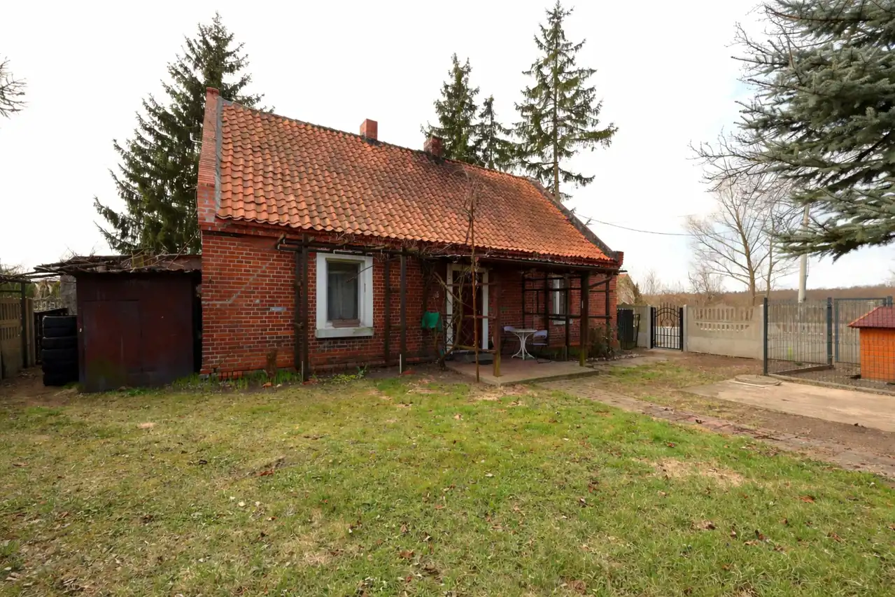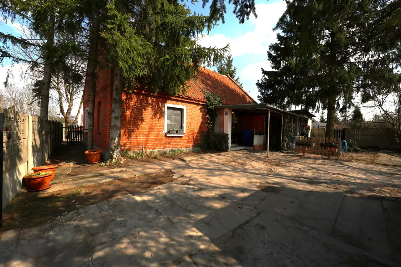 Na prostokątnej działce znajduje się ponad stuletni parterowy dom z duszą o powierzchni 80 m2 wybudowany z solidnej cegły