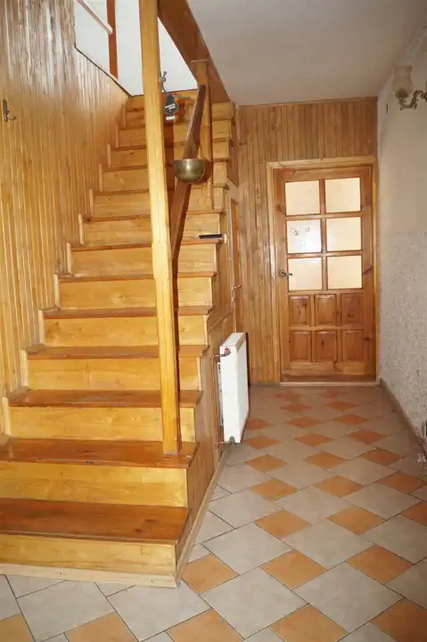 - parter domu : przestronny salon (ok 35m2) z komikiem i wyjściem na taras , dwa osobne pokoje (16m2), kuchnia z jadalnią (15m2) , wiatrołap , łazienka w płytkach z prysznicem(10m2), hall z pięknymi dębowymi schodami które prowadzą na piętro domu