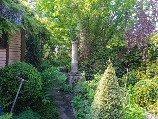 Działka jest ogrodzona w pełni zagospodarowana nasadzona różnorodną roślinnością: