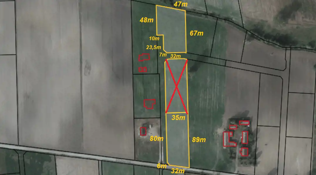 Działki powstały w wyniki podziału większej działki, dla której były wydane warunki zabudowy na zabudowę mieszkaniową jednorodzinną. Po podziale warunki straciły ważność. Nowe warunki do działek są w trakcie realizacji.