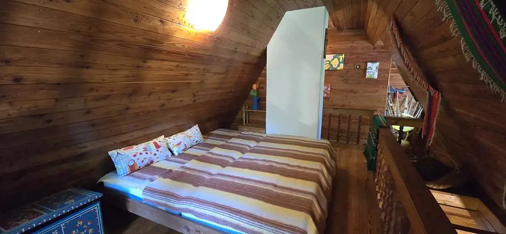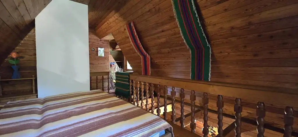 Poddasze mieszkalne stanowi zamknięta sypialnia oraz duża antresola z miejscami do spania (jest możliwość zmiany antresoli na drugą oddzielną sypialnię). Z antresoli jest wyjście na balkon.