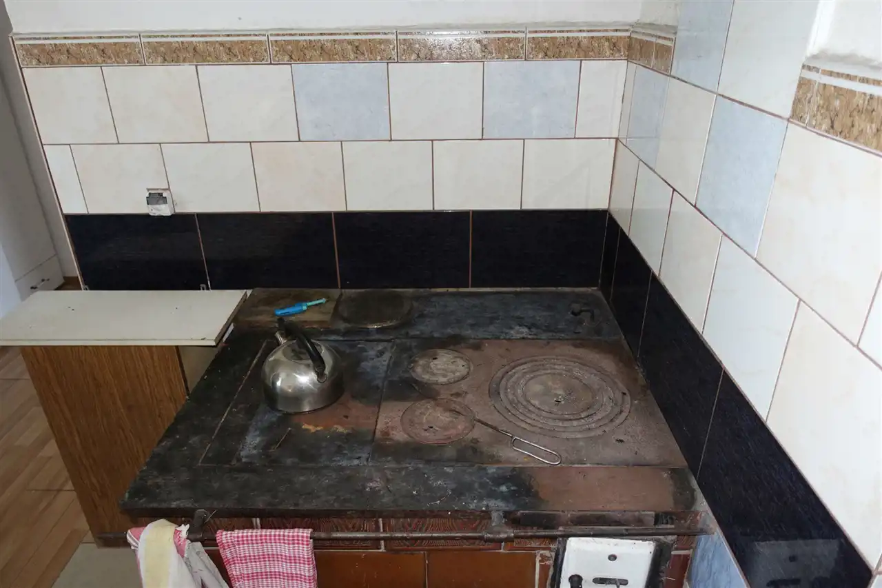 Ogrzewanie budynku - piec typu westfalka w kuchni.