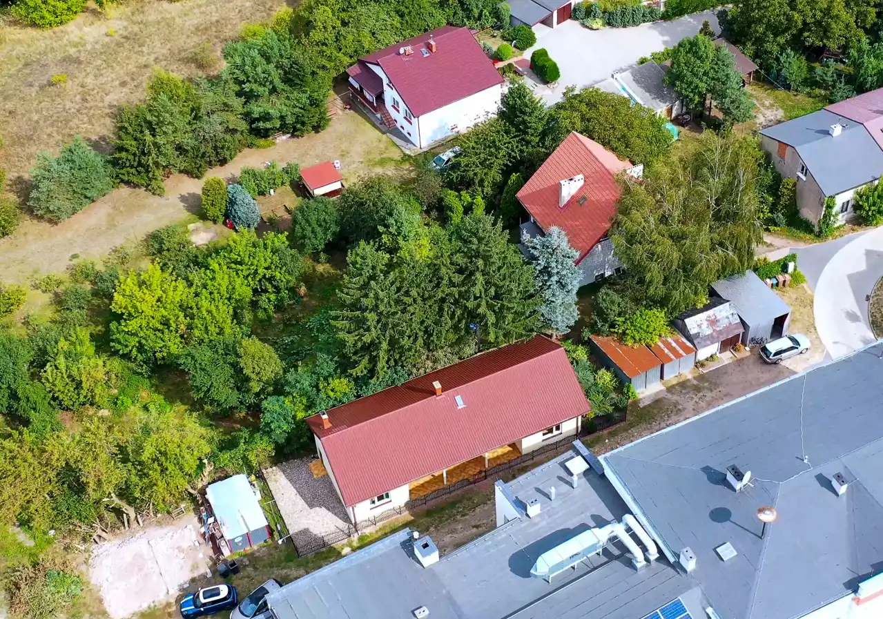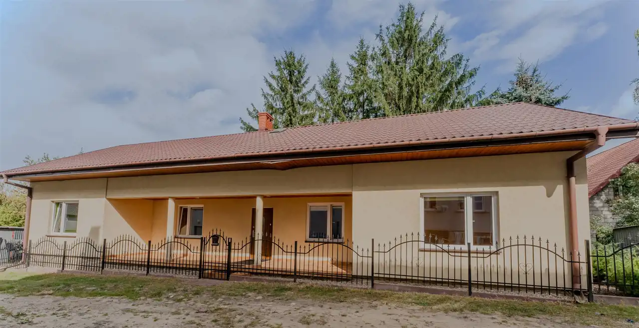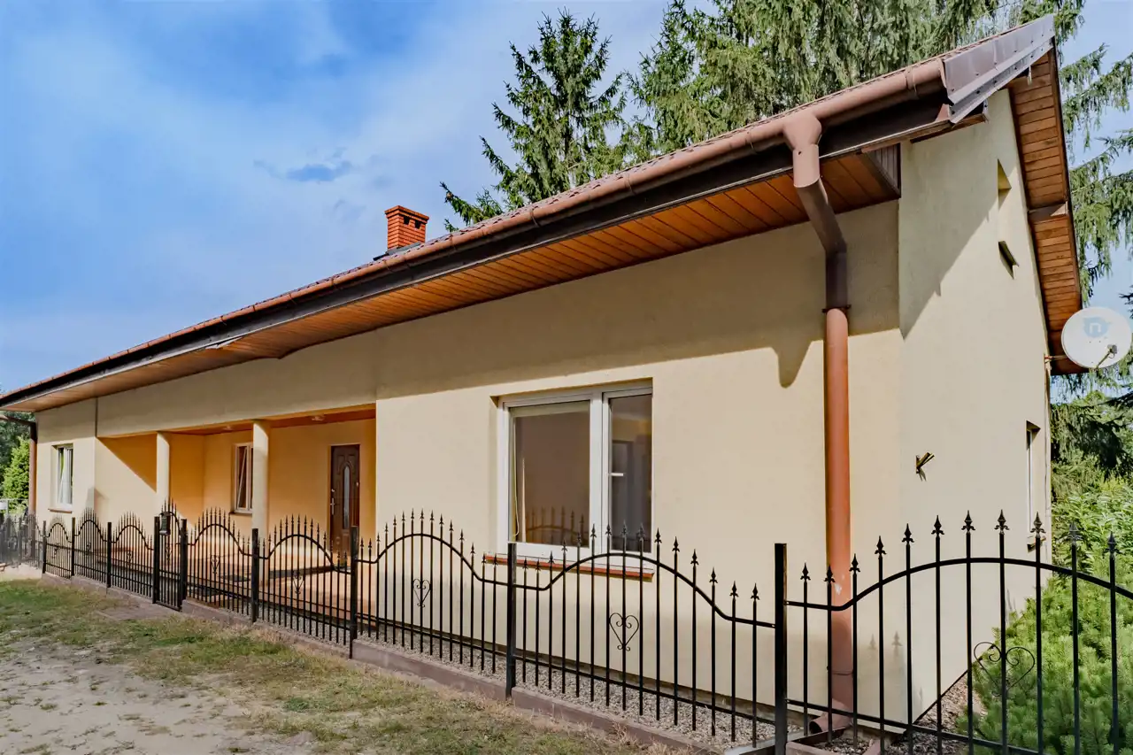 Parterowy budynek obejmuje cztery przestronne pokoje, funkcjonalną kuchnię, korytarz, hol, łazienkę, oddzielne WC, pomieszczenie gospodarcze oraz kotłownię. Dodatkowo, do dyspozycji pozostaje niezagospodarowane poddasze użytkowe, dające możliwość dalszej adaptacji zgodnie z potrzebami przyszłych właścicieli.