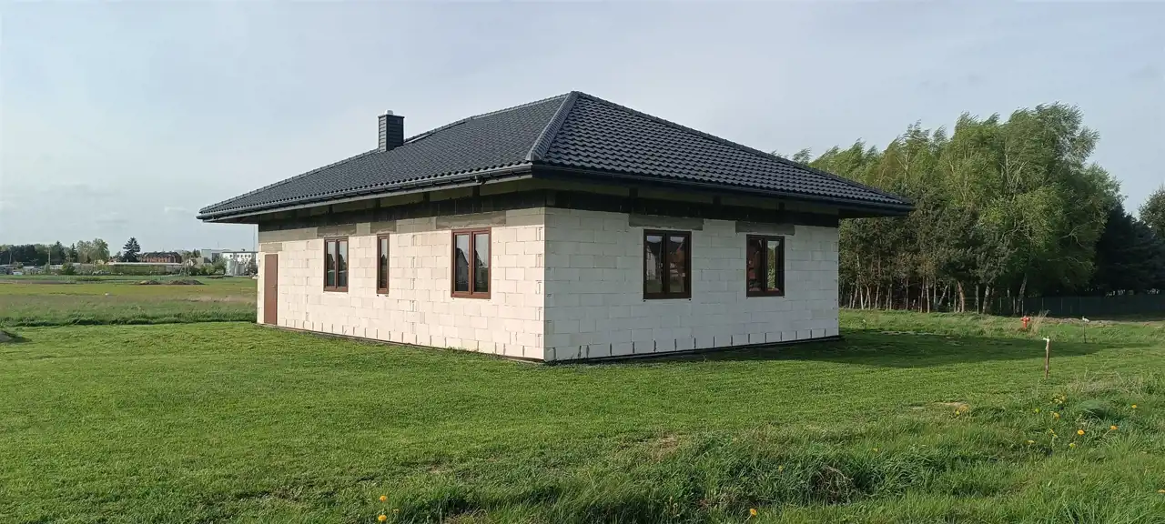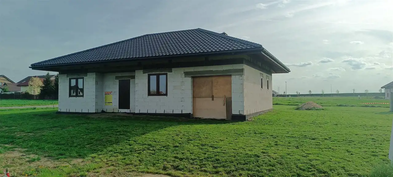 Oferujemy na sprzedaż dom wolnostojący, parterowy o powierzchni całkowitej 142,36 m2, powierzchni użytkowej 89,67 m2, na działce 1066 m2, usytuowany na zorganizowanym osiedlu domów jednorodzinnych. Dom składa się z salonu, kuchni, dwóch sypialni, łazienki, wc, garażu i kotłowni. Dom w stanie surowym zamkniętym, wybudowany z suporeksu, strop Teriva ocieplony styropianem 20 cm, dach pokryty blachodachówką, okna PCV, instalacja wodna i kanalizacyjna doprowadzona do budynku (kanalizacja rozprowadzona wewnątrz budynku), skrzynka elektroenergetyczna na granicy działki. Nieruchomość położona jest ok. 400 m od Centrum Lubienia Kujawskiego, ok. 500 m od Jeziora Lubieńskiego. Polecam