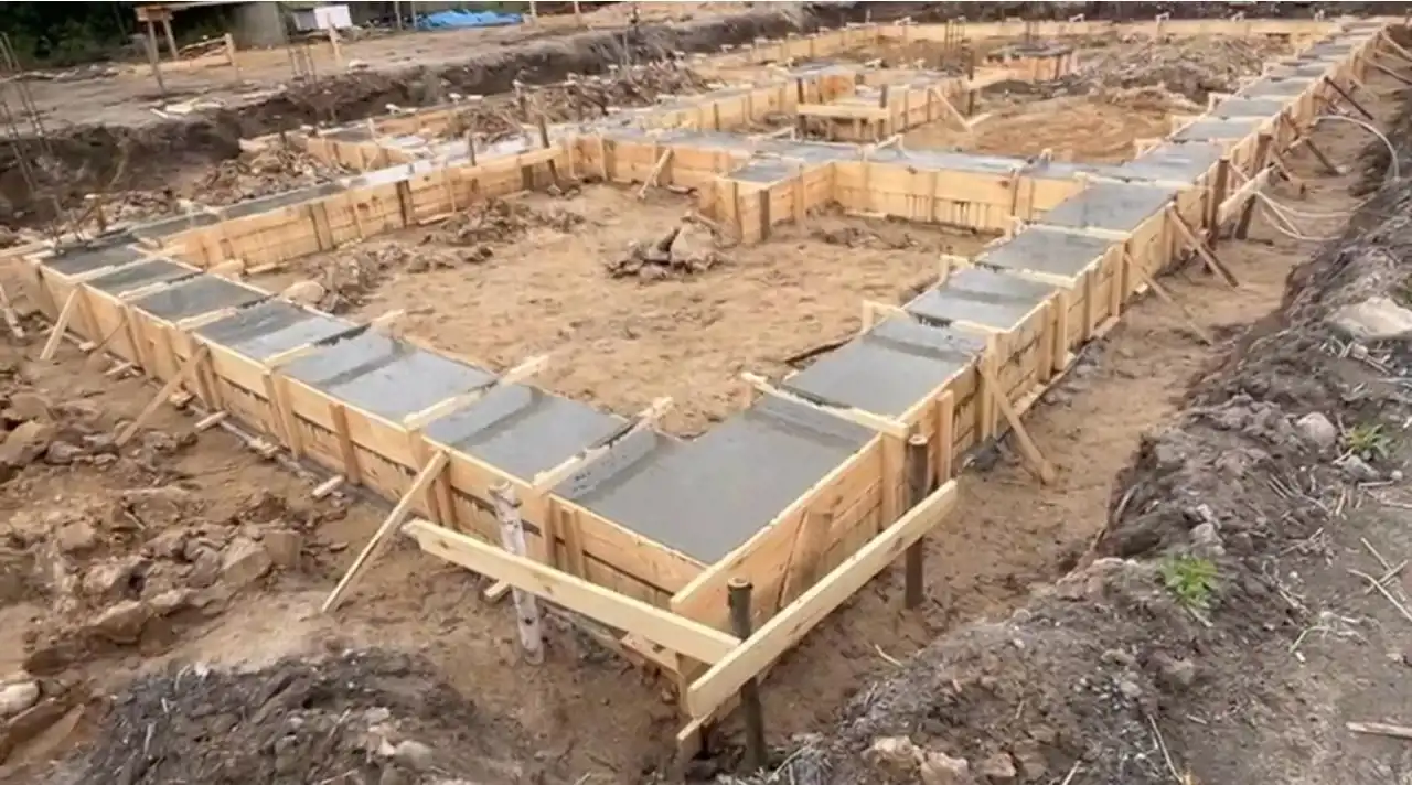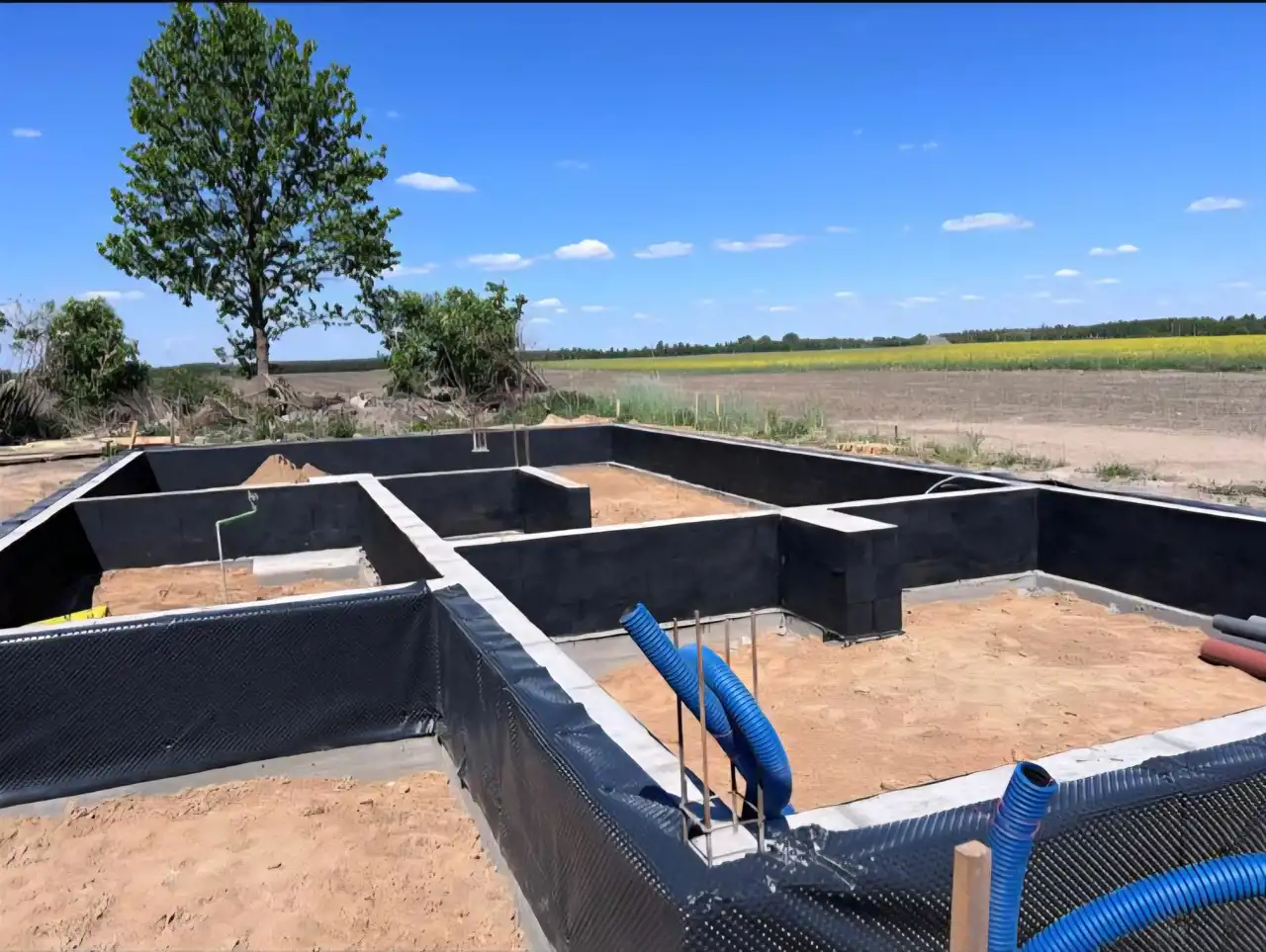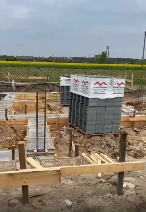 Na prezentowanym terenie wylane zostały fundamenty z bloczka zalewowego, z dociepleniem ze styroduru.