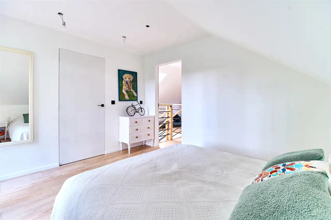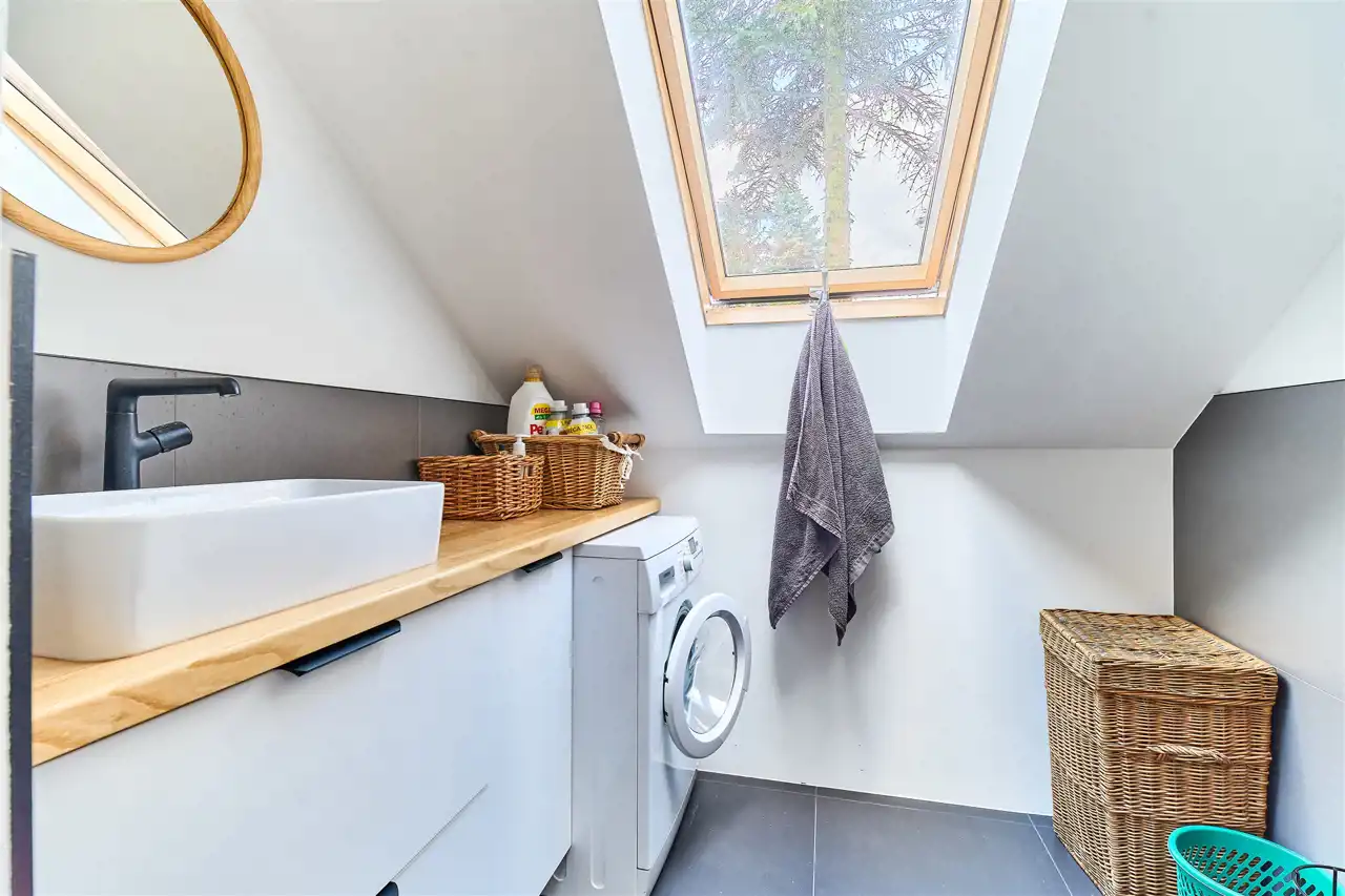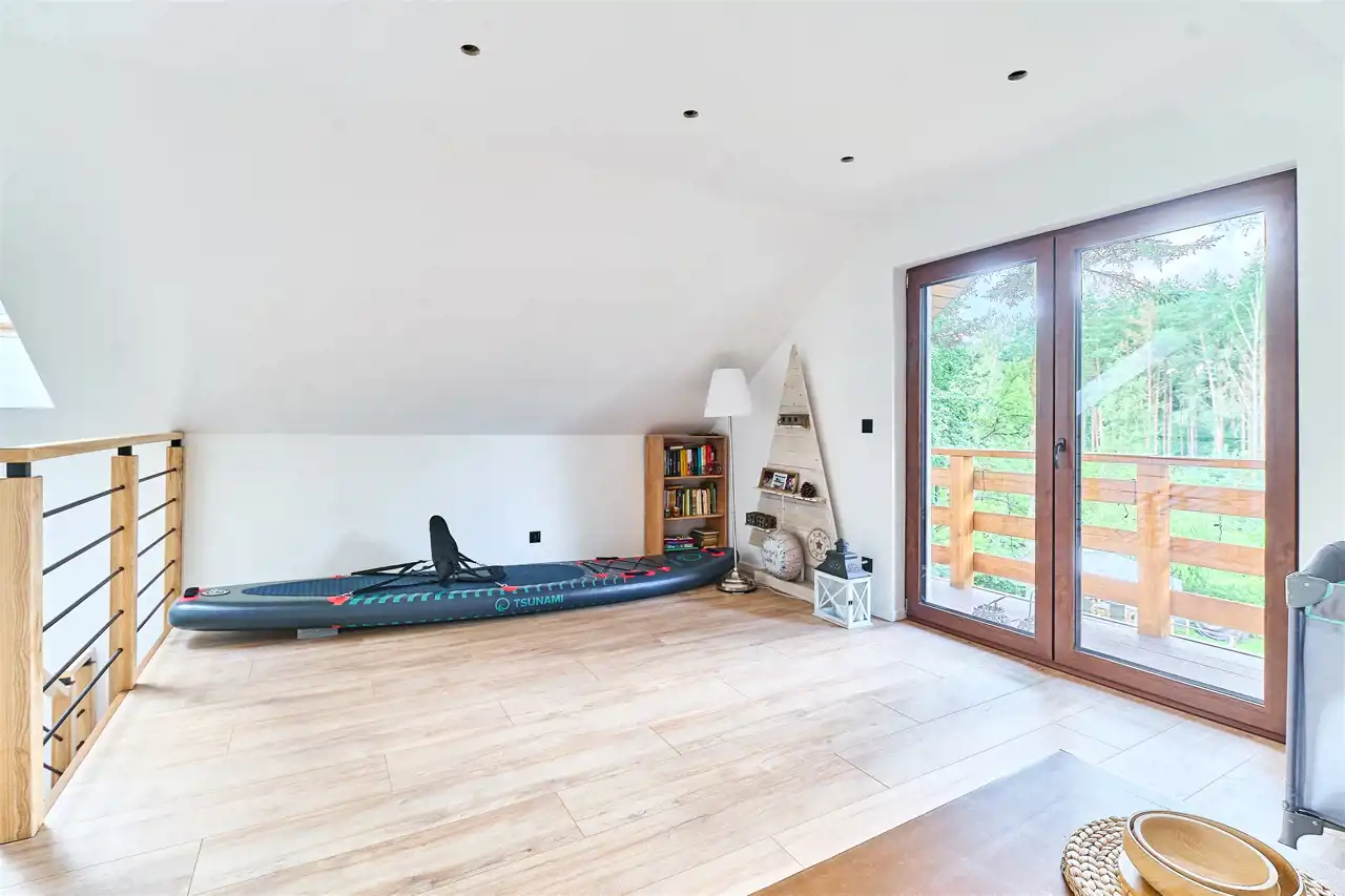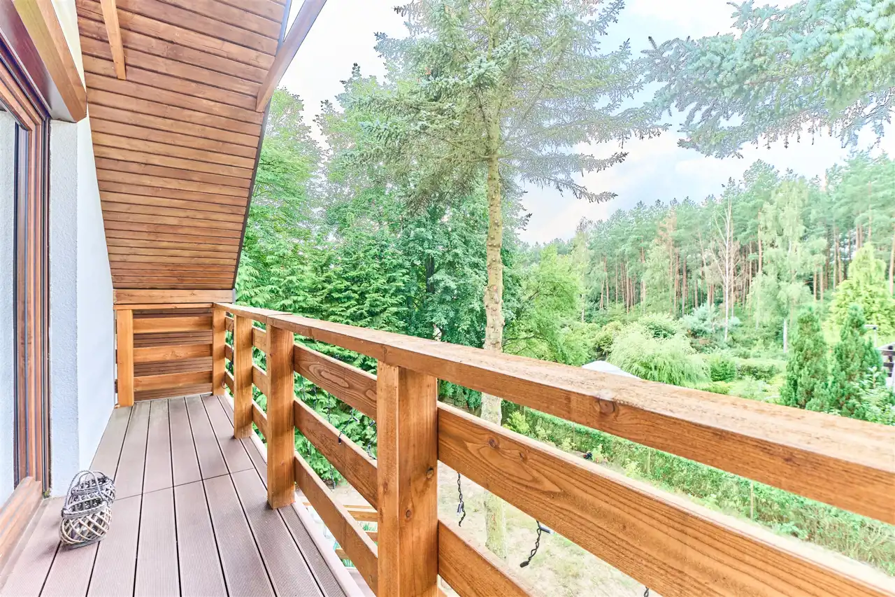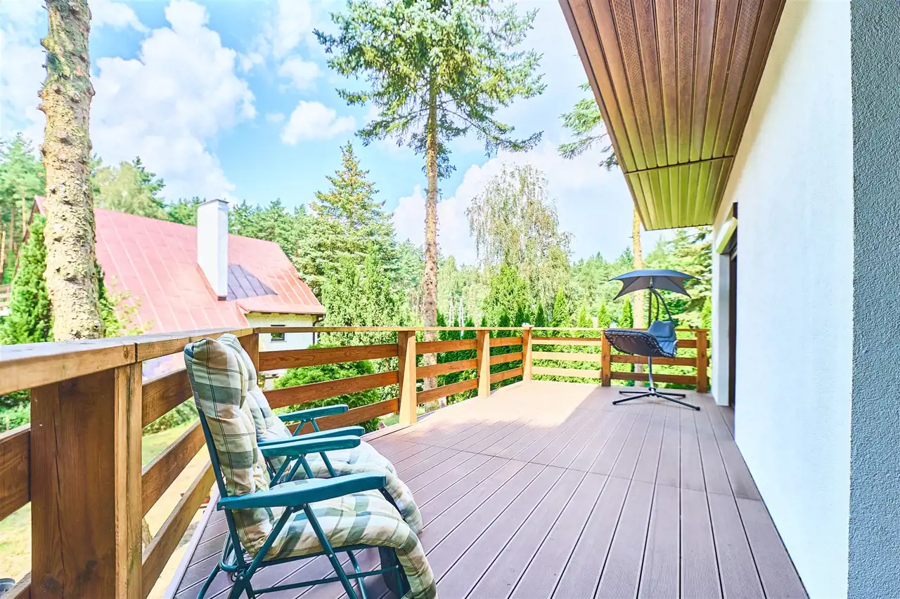 Budynek mieszkalny wolnostojący, podpiwniczony, czteropokojowy. Wybudowany w 2023 roku, w technologii szkieletowej wyizolowany podwójną warstwą z wełny mineralnej i skalnej. Powierzchnia użytkowa domu wynosi 89 m2. Obecnie są dwie sypialnie z dostępem do indywidualnych balkonów i możliwością zrobienia trzech sypialni, dwie łazienki i duży, otwarty salon z kuchnią, który dodatkowo ma dostęp do dużego narożnego tarasu.