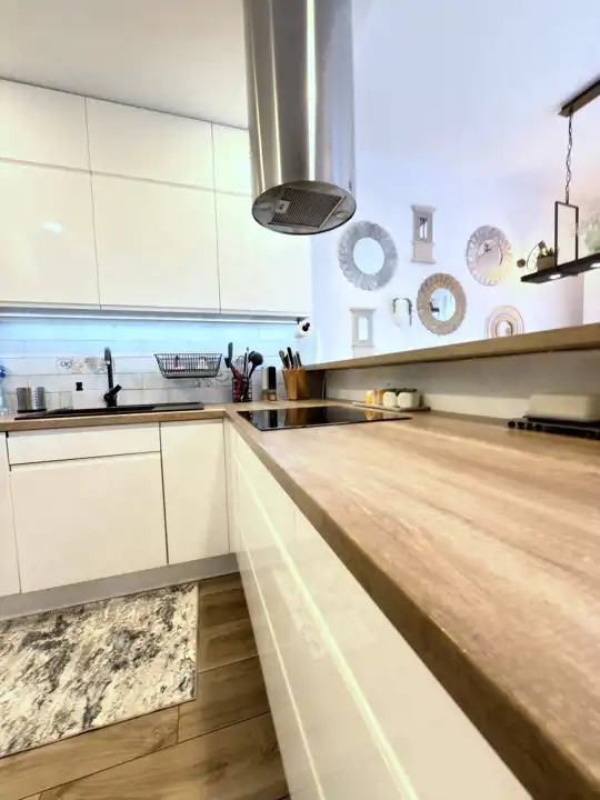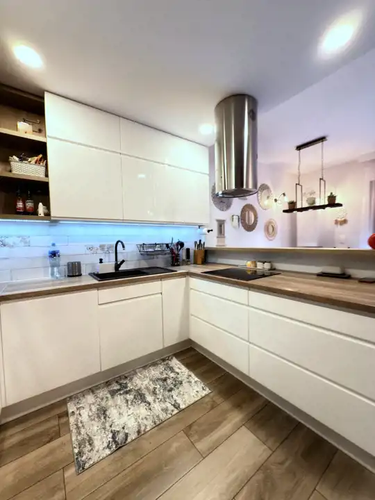 Kuchnia - meble w zabudowie na wymiar wraz z sprzętem AGD - zmywarka, okap, lodówka, piekarnik, płyta indukcyjna.