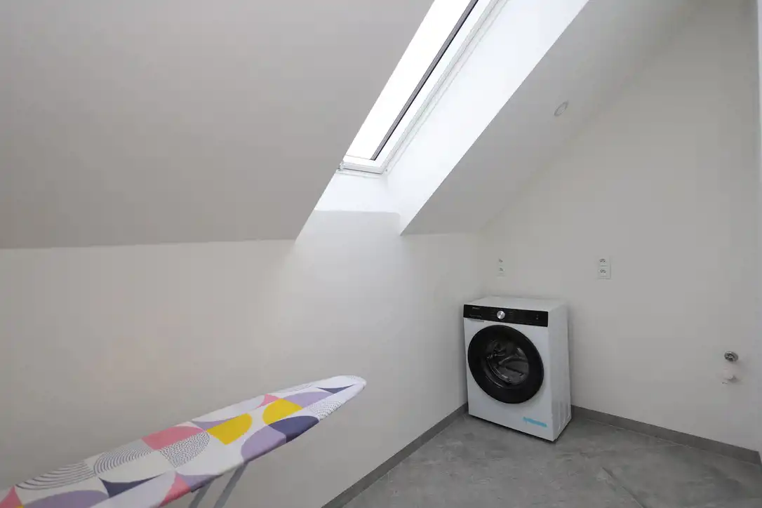 - łazienka z dużym prysznicem (120x100cm) i wanną 170cm i z przyległą pralnią