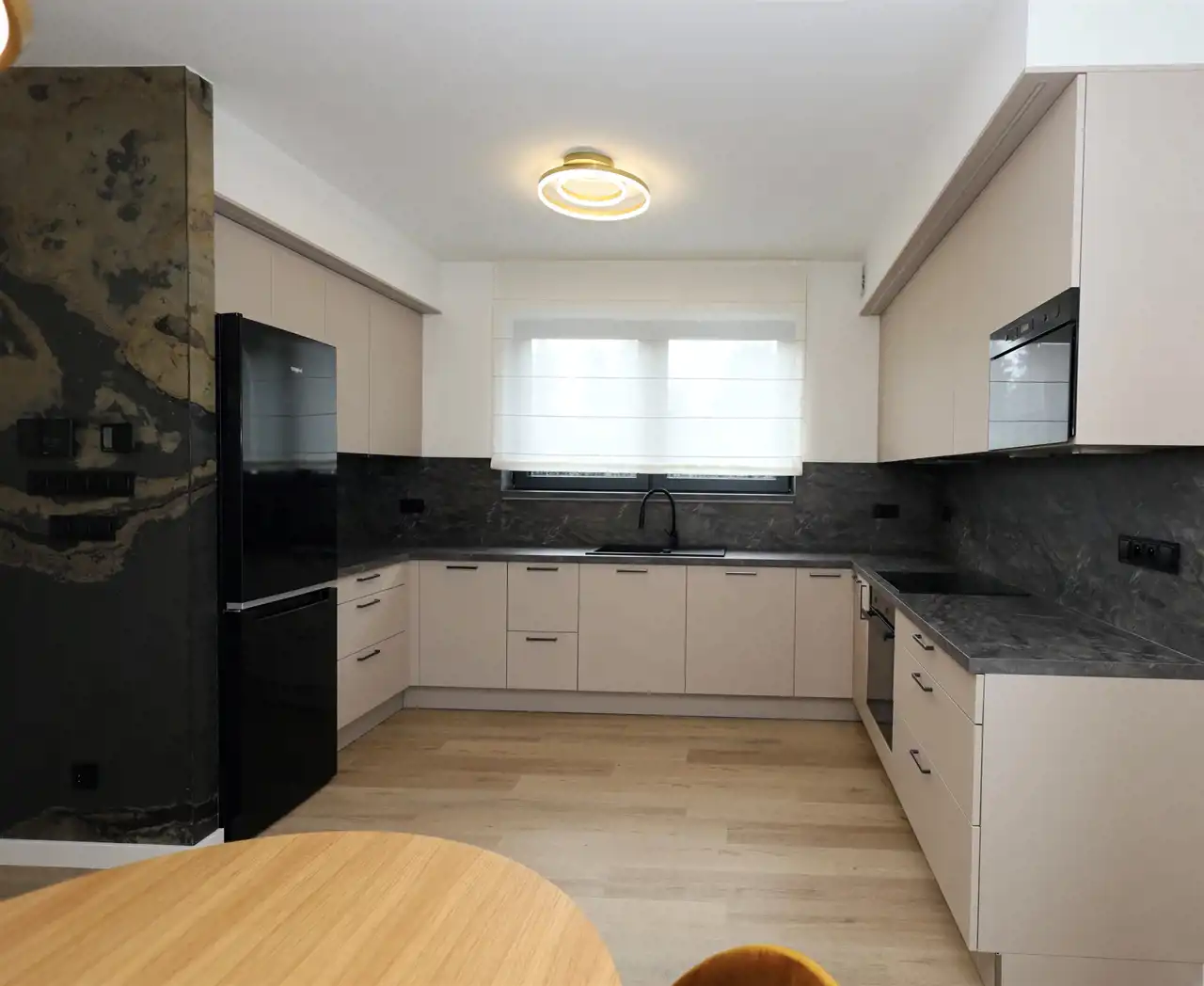 - nowoczesna zabudowa meblowa z podświetleniem led : meble kuchenne z agd (zmywarka, piekarnik, płyta indukcyjna, mikrofalówka, czajnik, toster, cichy okap również sterowany pilotem, chłodziarko-zamrażarka), szafy w zabudowie w każdej sypialni i zabudowa w wiatrołapie,