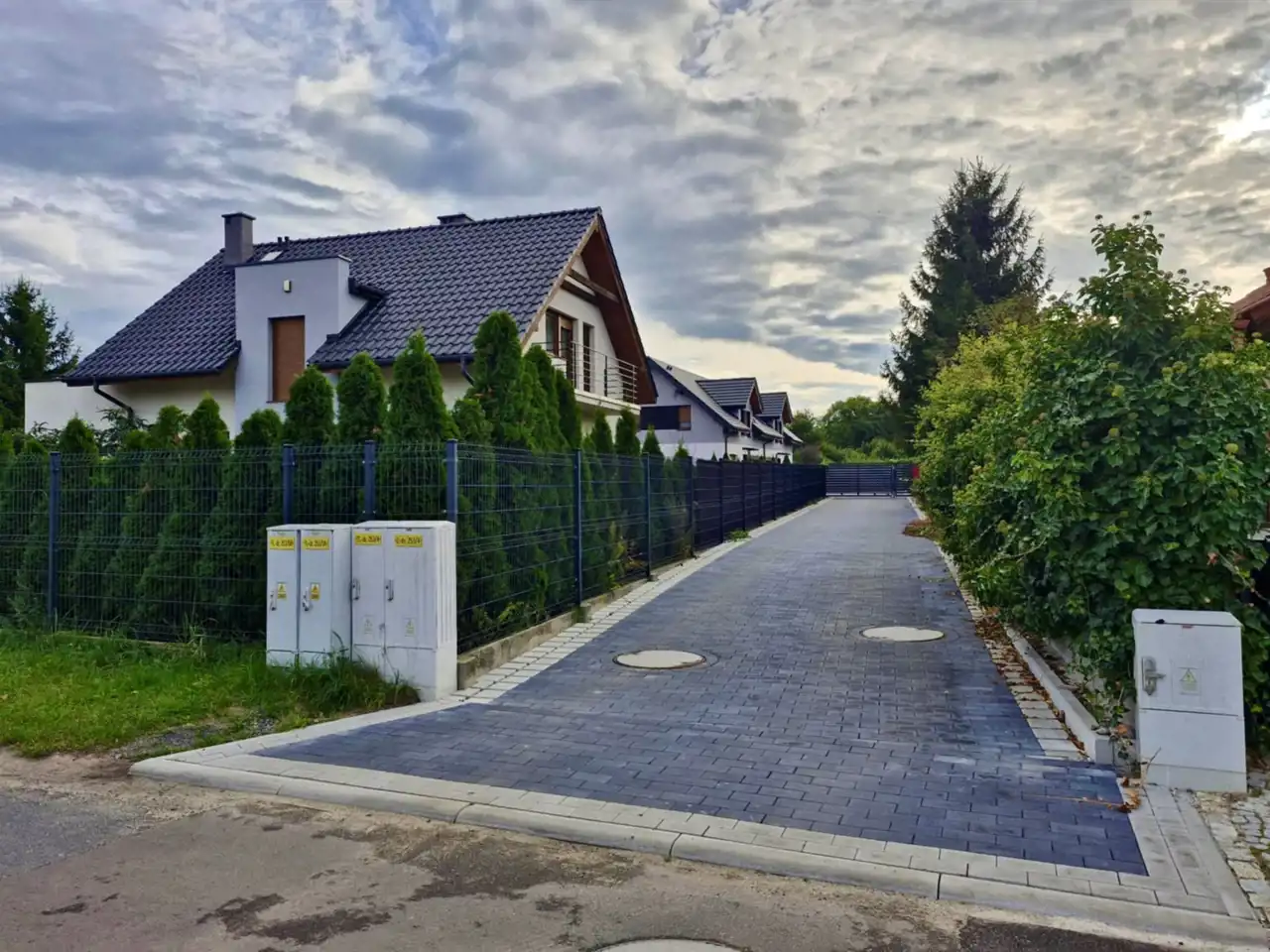 - posesja w pełni ogrodzona, wyposażona w monitoring, elektryczne rolety zewnętrzne antywłamaniowe, video-domofon, wjazd na posesję bramą sterowaną na pilota lub na pin– gwarancja prywatności i bezpieczeństwa,