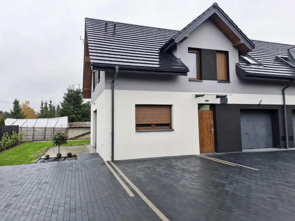 Nowy (nie użytkowany) , komfortowy dom w zabudowie bliźniaczej o powierzchni 114 m² + garaż 20 m², wykończony w wysokim standardzie i z dbałością o każdy detal - do tej pory niezamieszkany.