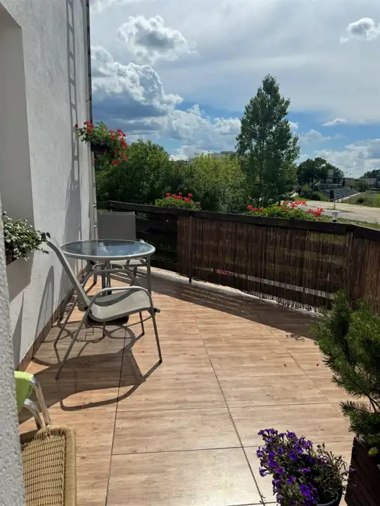 - poziom 1 to dwuczęściowa strefa mieszkalna; pierwsza to przestronny, salon z wyjściem na taras; jadalnia, sypialnia, kuchnia, łazienka z wc, korytarz, druga cześć to dwupoziomowe mieszkanie z wyjściem na ogród.