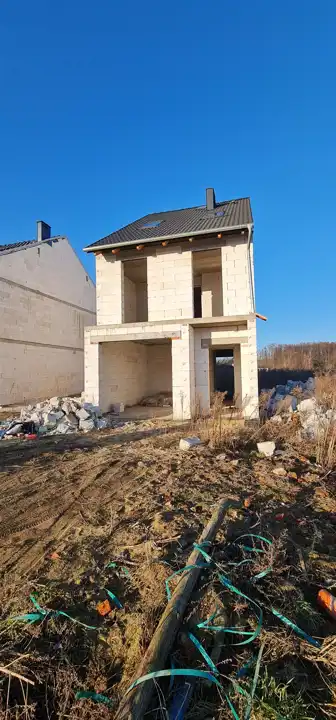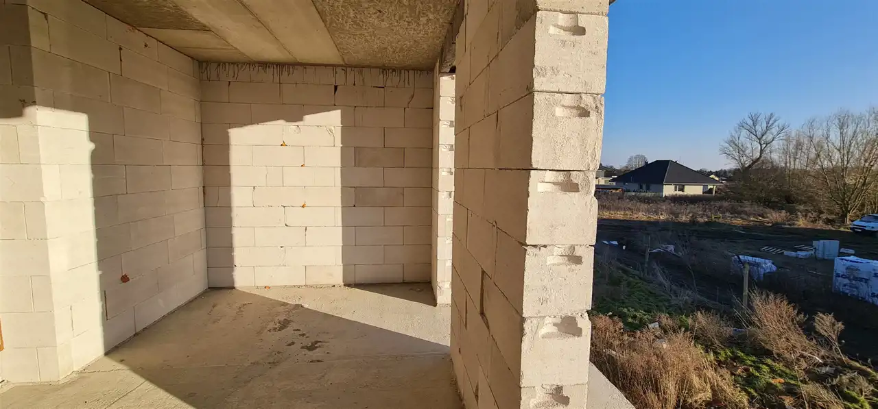 STAN WYBUDOWANIA: surowy OTWARTY (mury, ścianki działowe, dach, stropy lane, schody betonowe, okna dachowe).