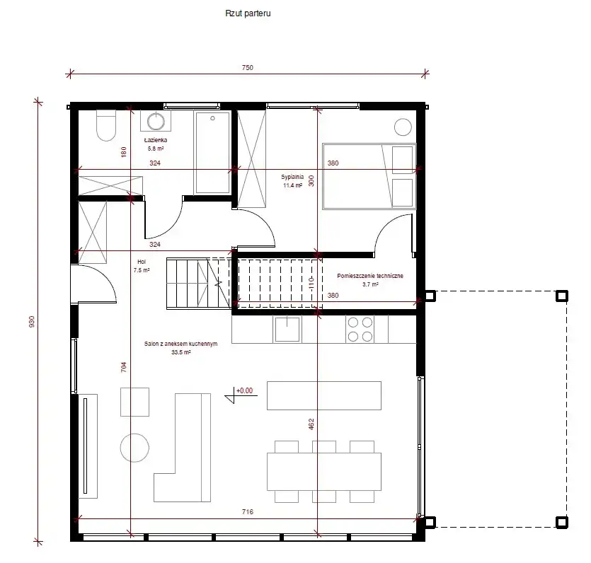 Szerokość elewacji: 7,5m
