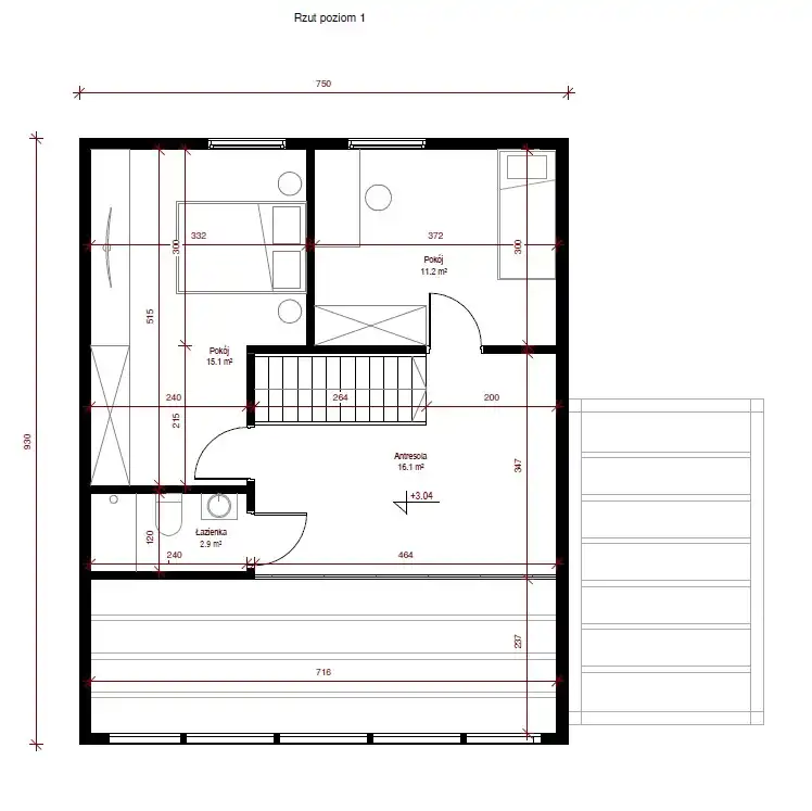 Długość elewacji: 9,3m