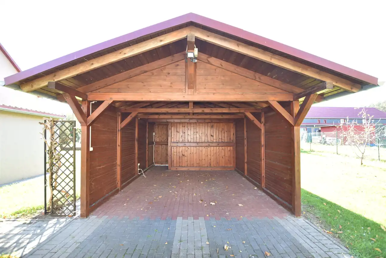 Dom częściowo podpiwniczony, posadowiony na działce 793 m.kw - na której znajduje się WIATA GARAŻOWA (z 2015r.) o konstrukcji drewnianej na podłożu z kostki betonowej, wyposażona w oświetlenie oraz z wydzielonym SCHOWKIEM na narzędzia.