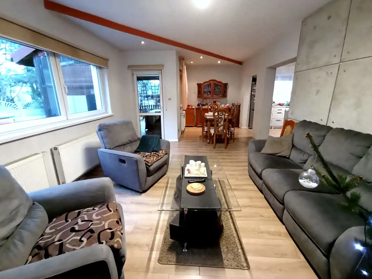 - Liczba pokoi: 5 (salon z jadalnią, 4 sypialnie),
