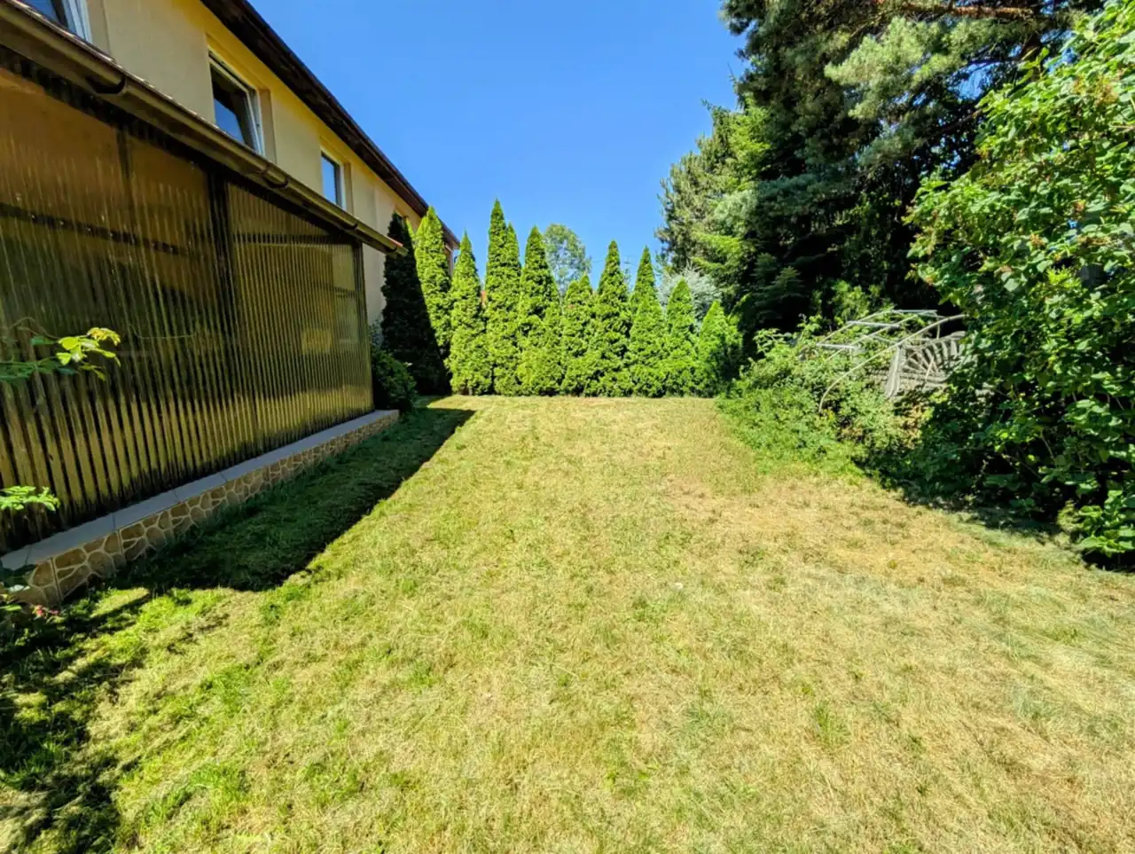 Przed budynkiem wybrukowany podjazd, a za domem zaciszne miejsce na basen, grilla i miejsce do wypoczynku.