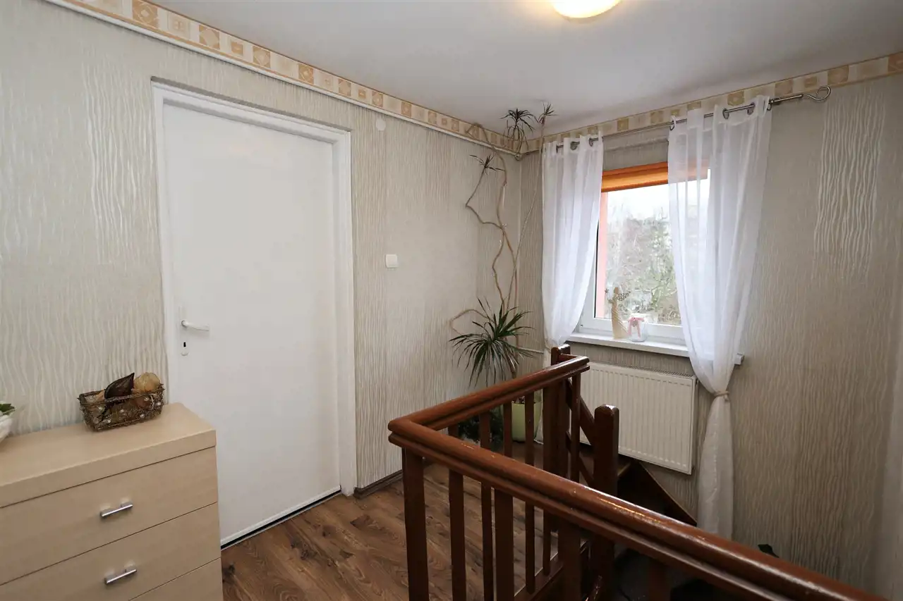 Dom z cegły, docieplony, okna pcv, ogrzewanie miejskie, w pokojach gładzie na ścianach i panele na podłodze, drewniane schody. Garaż z kanałem.