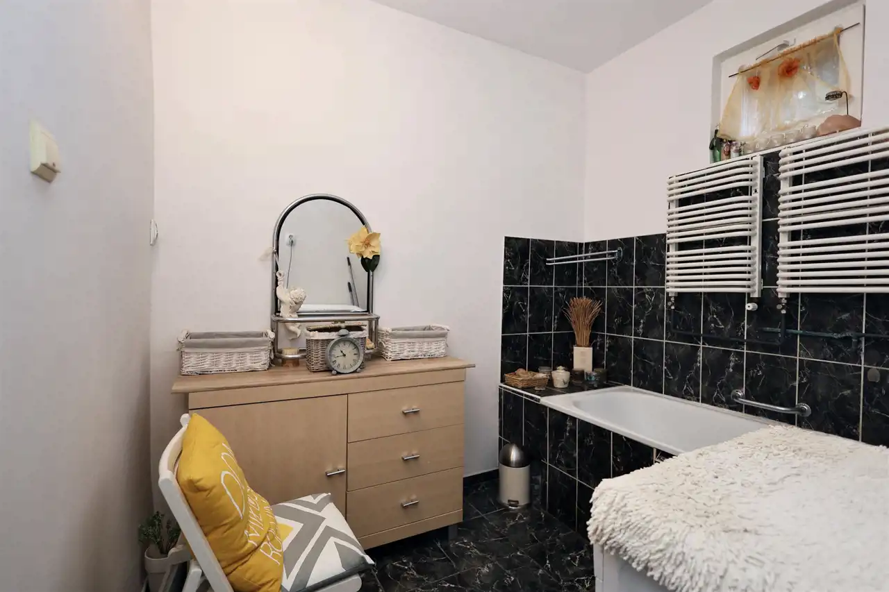 - Media Ogrzewanie: C.O. miejskie; Woda: ciepła - piecyk gazowy; Kanalizacja: tak; Prąd: jest; Gaz: tak - miejski