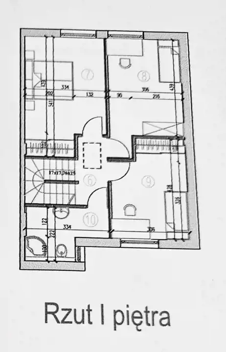 Na piętrze wydzielono 3 ustawne pokoje z możliwością wydzielenia garderoby/szafy oraz rodzinną łazienkę.
