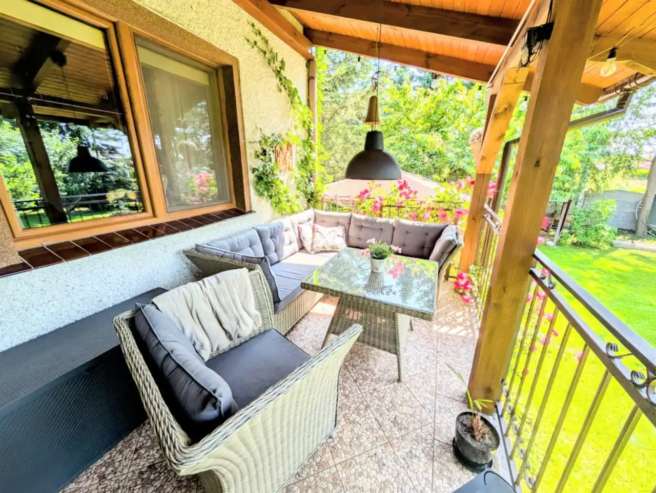 - Piękny, zagospodarowany ogród z systemem nawadniania, studnią, dużą altaną i miejscem na grilla, basen - idealny do relaksu i spędzania czasu z rodziną i przyjaciółmi.