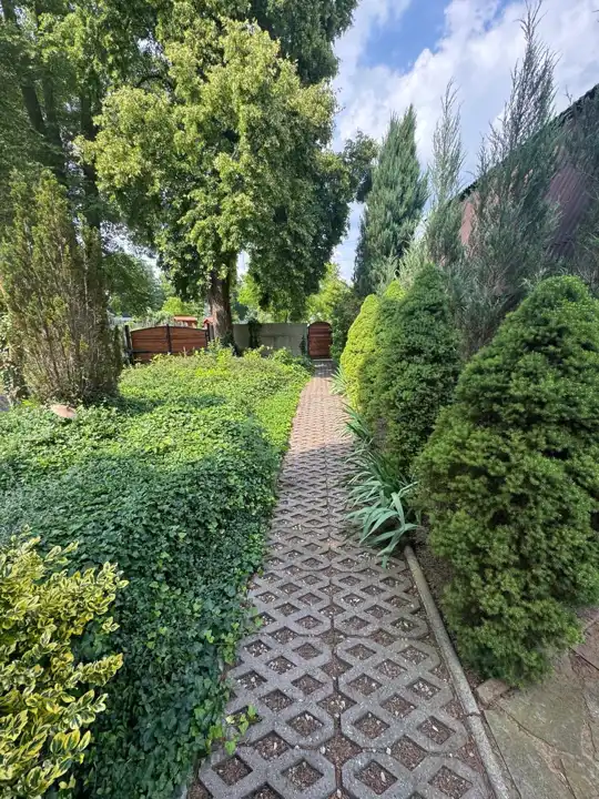 Dodatkowym atutem jest wolnostojący, dwustanowiskowy garaż oraz klimatyczna altanka ogrodowa. Wjazd na posesję odbywa się przez automatyczną bramę, co zwiększa komfort codziennego użytkowania.