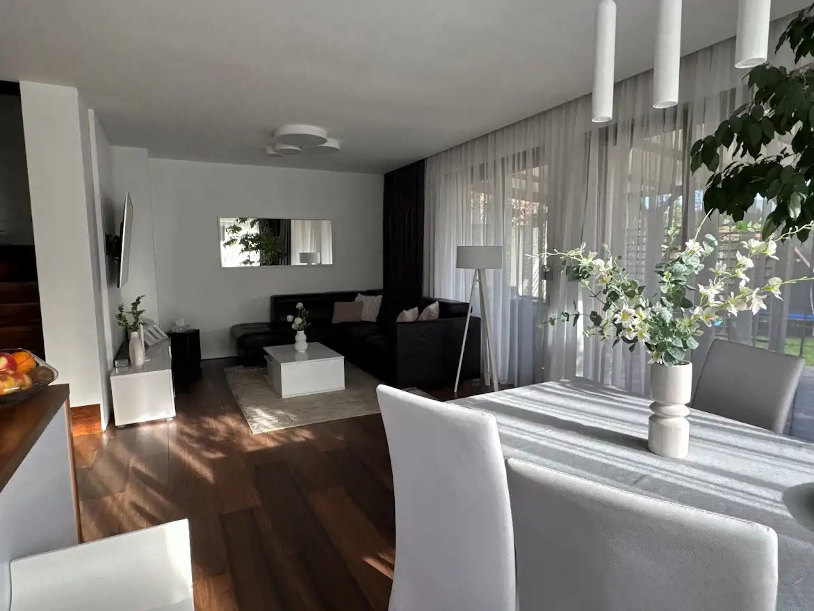 NIE SZUKAJ DALEJ- OFERTA NA WYŁĄCZNOŚĆ, DOSTĘPNA TYLKO W NASZYM BIURZE! Bliżniak w miejscowości Obora- całkowita powierzchnia to 131,15m2; działka o pow. 378m2; PARTER Już od wejścia wita nas przestronny hall płynnie prowadzący do salonu połączonego z kuchnia i jadalnią, który zaprasza do relaksu i wspólnych chwil z rodziną. Wysokiej jakości okna pozwalają cieszyć się widokiem pięknie zagospodarowanego ogrodu. Kuchnia to raj dla miłośników gotowania nowoczesna, ergonomiczna, stworzona z myślą o wygodzie. Na parterze znajduje się także praktyczne i bardzo funkcjonalne pomieszczenie gospodarcze/kotłownia, wc oraz garaż, w którym oprócz miejsca na samochód, znajdziemy miejsce na dodatkowe sprzęty. Każdy centymetr przestrzeni został zaprojektowany z myślą o funkcjonalności i estetyce. PIĘTRO TO OAZA PRYWATNOŚCI Wchodząc na piętro, odkrywamy prywatną oazę domowników. Trzy przytulne pokoje oferują przestrzeń do snu, pracy czy zabawy. Serce piętra stanowi luksusowy pokój kąpielowy idealny do wieczornego relaksu z dużą wanną i prysznicem. Jeden z pokoi posiada funkcjonalną garderobę, idealne pomieszczenie dla każdej osoby, ceniącej porządek. Detale, które czynią różnicę Dom urzeka nie tylko wnętrzem, ale i dbałością o każdy detal. Wykorzystane materiały są najwyższej jakości i gwarantują nie tylko trwałość, ale i niskie koszty utrzymania, co czyni go ekonomicznym wyborem na lata. Pięknie zaaranżowany ogród z komfortowym tarasem oraz basenem to idealne miejsce na letnie popołudnia, zabawy z dziećmi czy wieczorne rozmowy przy lampionach. Ta nieruchomość to więcej niż dom- to przestrzeń, w której rodzą się wspomnienia. Atuty nieruchomości: Nowoczesne i stylowe wykończenie Pełne umeblowanie i wyposażenie może zostać w cenie. Garaż w bryle budynku Kameralne osiedle z dobrą infrastrukturą