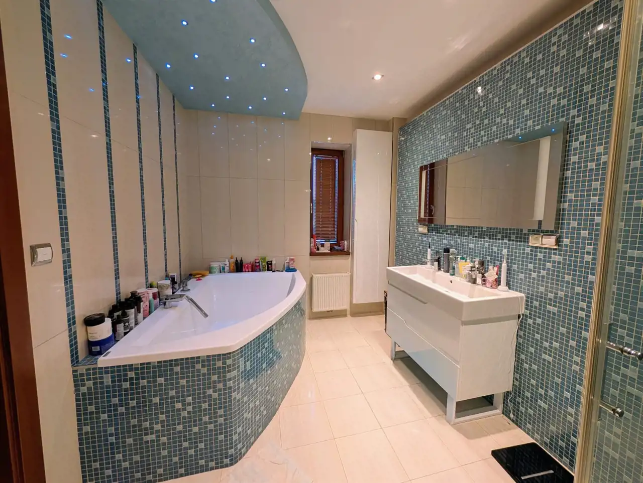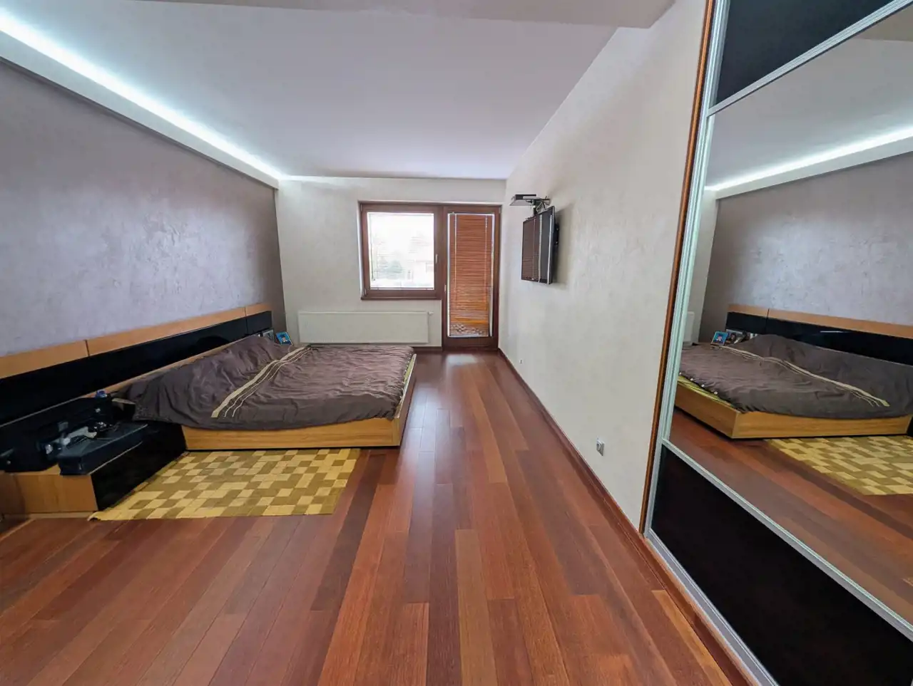 Na pierwszym piętrze znajduje się strefa nocna - 3 sypialnie, korytarz z szafą w zabudowie oraz efektowna łazienka z wanną i kabiną prysznicową.