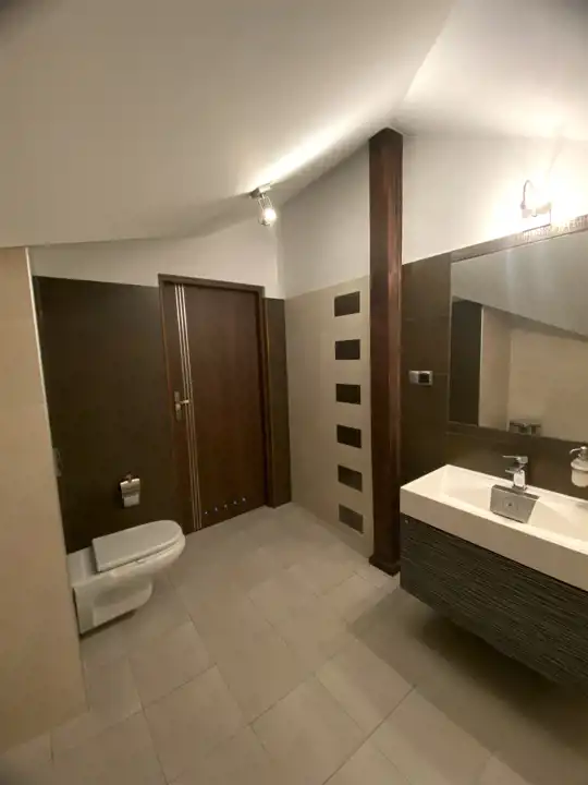 - 2 pełnie łazienki z kabinami i wanną,
