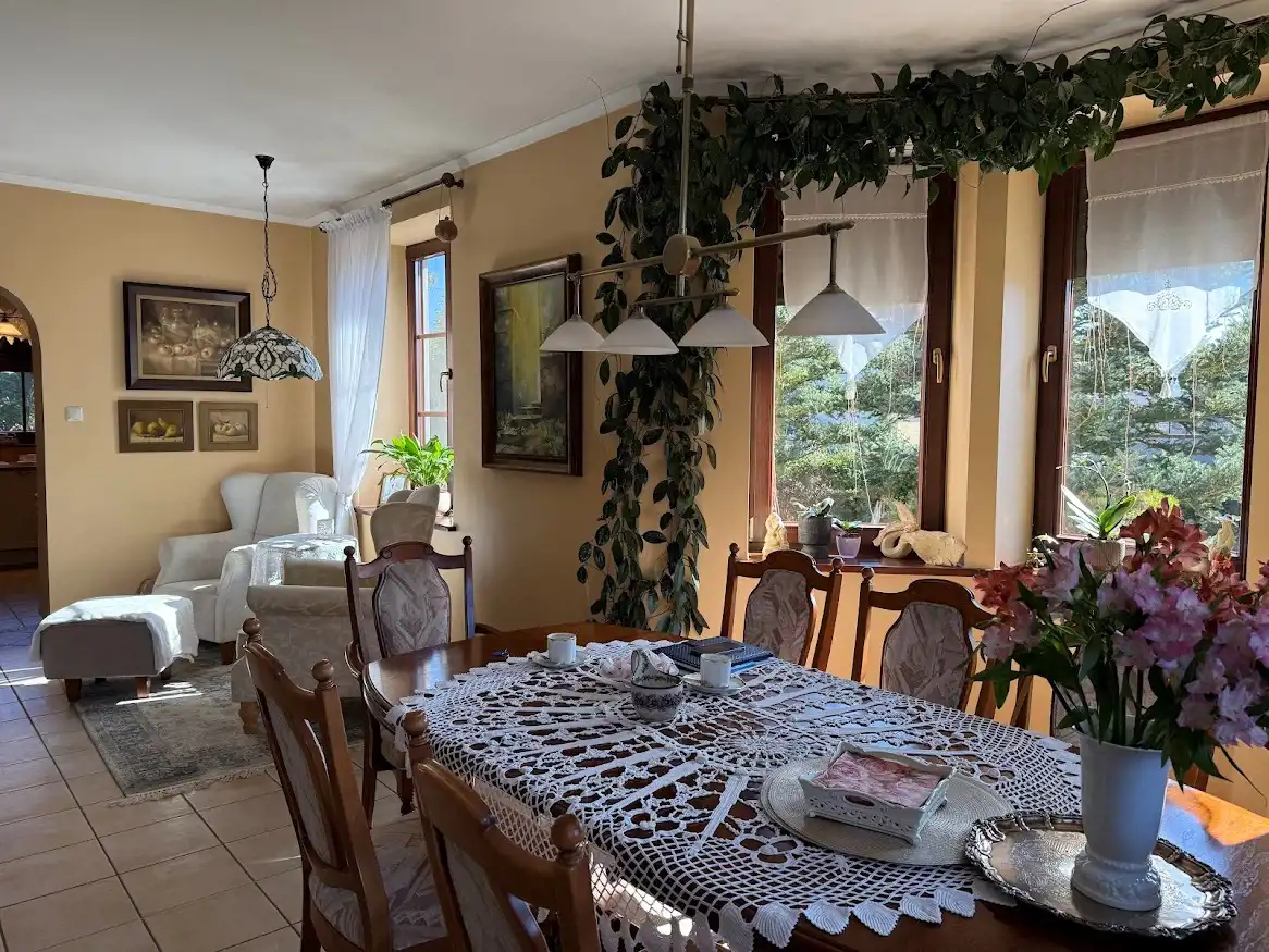 To propozycja dla osób poszukujących domu z charakterem – miejsca, w którym elegancja, spokój natury i komfort codziennego życia tworzą idealną całość.