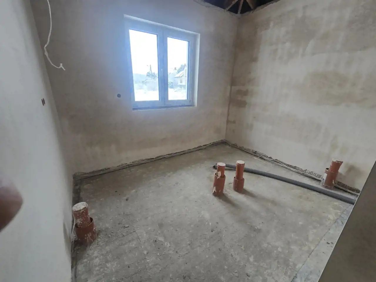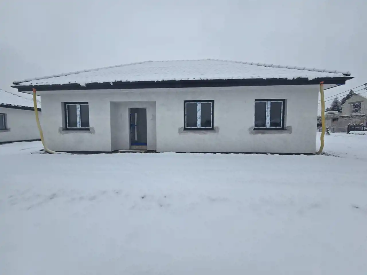 Do sprzedania wolnostojący, parterowy dom w Osieku o pow. 94,15m2 usytuowany na działce o pow. 6 arów. Nieruchomość zaprojektowana z myślą o wygodzie i funkcjonalności- czytelny podział na strefę dzienną i prywatną .Posiada trzy oddzielne sypialnie, salon z aneksem kuchennym, dużą łazienką (powiększoną o pralnie) oraz kotłownia z wc. Dom sprzedawany w stanie deweloperskim (niepełny). W cenie ocieplenie i elewacja, okna PCV z roletami zewnętrznymi, zewnętrzne parapety granitowe, wykonane tynki wewnętrzne, rozprowadzona instalacja elektryczna wraz z gniazdkami, woda i kanalizacja doprowadzone do działki. Do wykończenia stanu pozostają wylewki, ogrzewanie (gazowe lub pompa ciepła), zamkniecie sufitu, rozprowadzenie instalacji wod- kan w budynku. Możliwość wykończenia domu przez dewelopera „pod klucz”. Idealne miejsce dla osób ceniących kontakt z natura i odpoczynek od miejskiego zgiełku, a jednocześnie dobrą komunikacją i szybkim i wygodnym dojazdem do miasta.