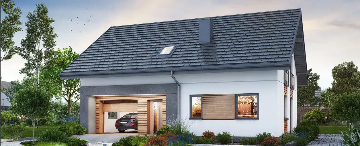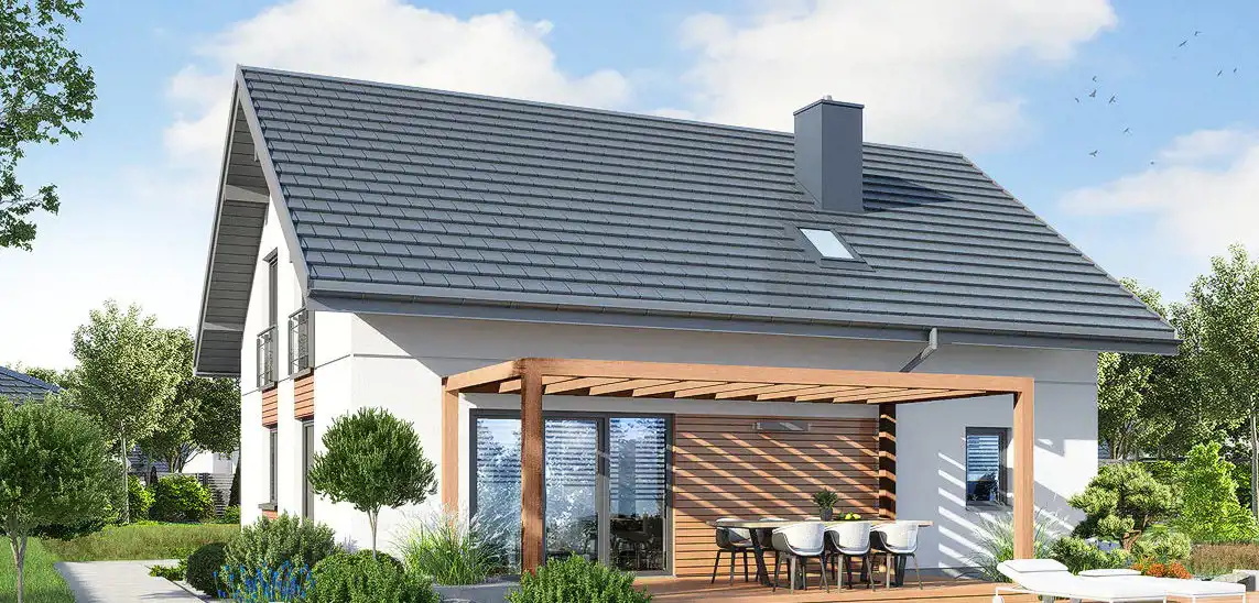 f) poza strefą „U” dachy strome dwu lub wielospadowe o symetrycznym nachyleniu połaci pod kątem 27°- 45°, kryte dachówką ceramiczną lub materiałem dachówkopodobnym w kolorach ceglastym, brązowym i szarym, g) dopuszcza się wzbogacenie formy dachu poprzez wprowadzenie świetlików i lukarn,