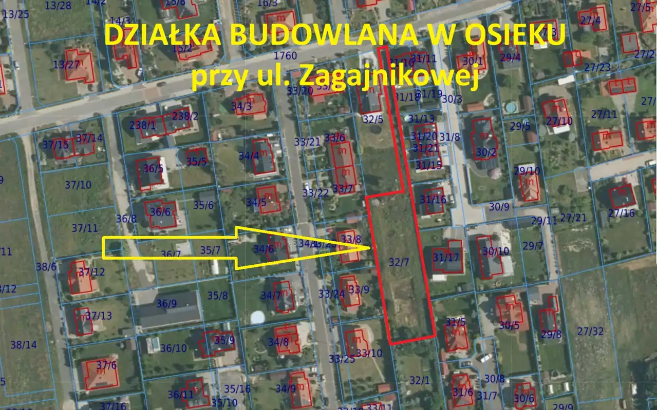 Do sprzedaży działka budowlana o pow. 18 arów ( z czego droga wjazdowa ok 3 ary) pod budownictwo mieszkaniowe jednorodzinne położona w pięknym miejscu w miejscowości - Osiek, przy ul. Zagajnikowej.