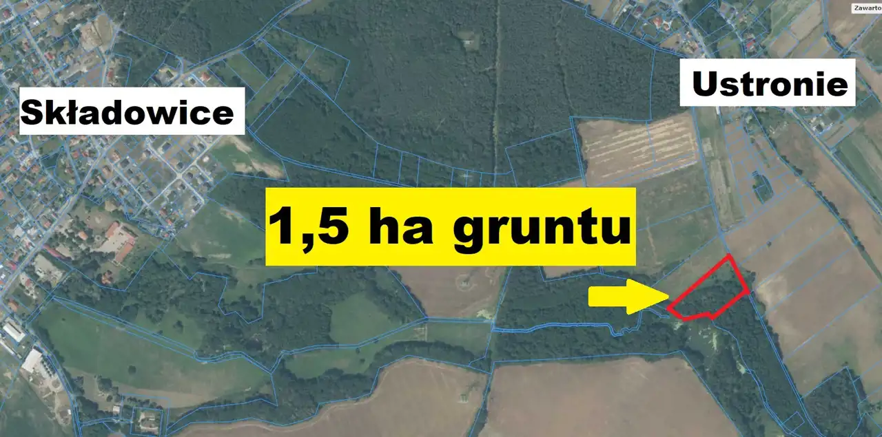 Na sprzedaż działka o pow 1,5 hektara położona w miejscowości Ustronie - w gminie Lubin o numerze ewidencyjnym nr 86.