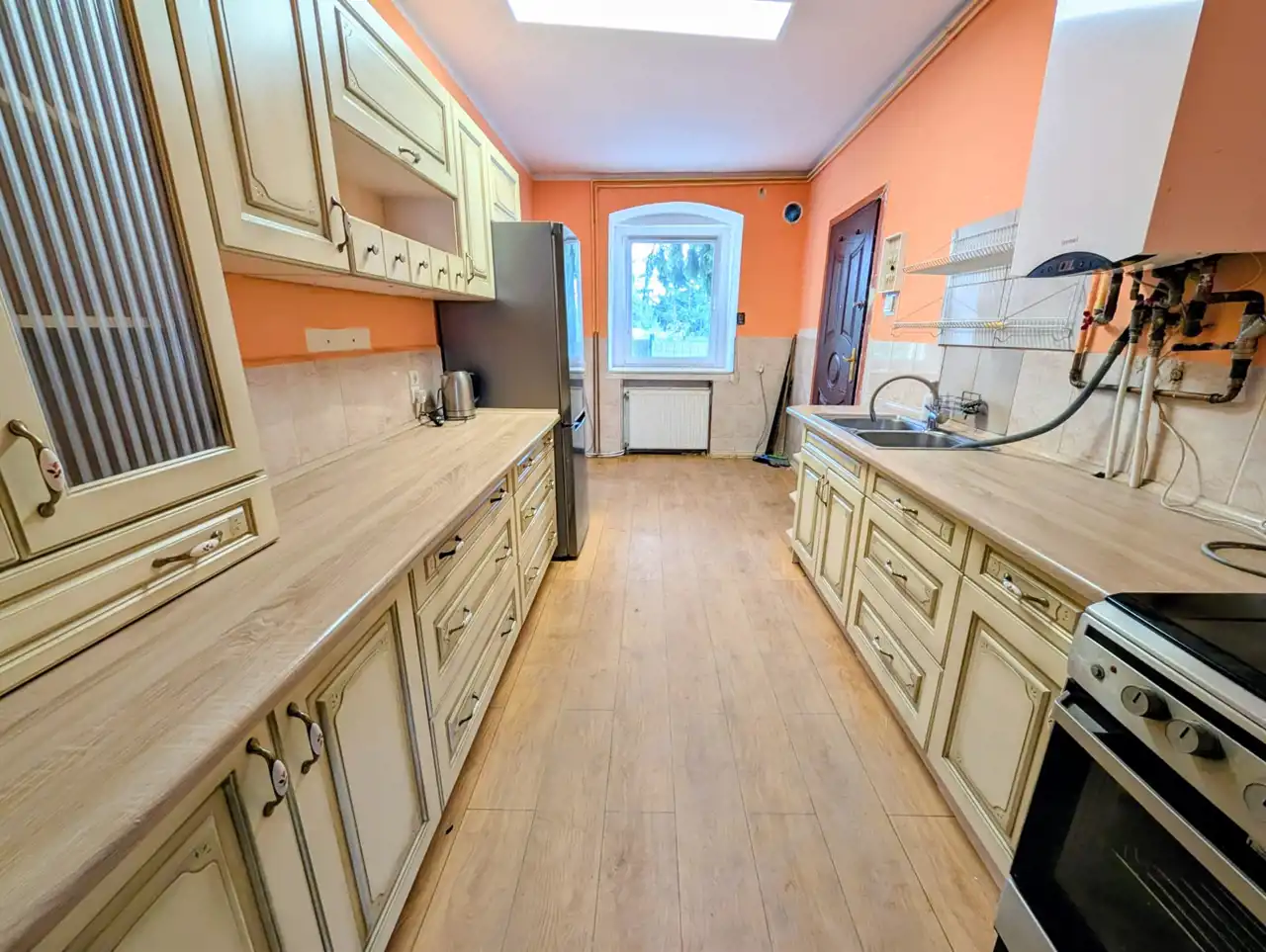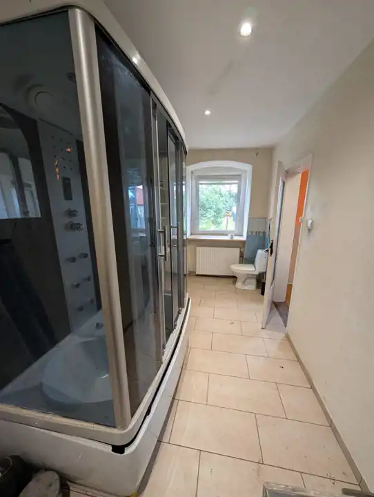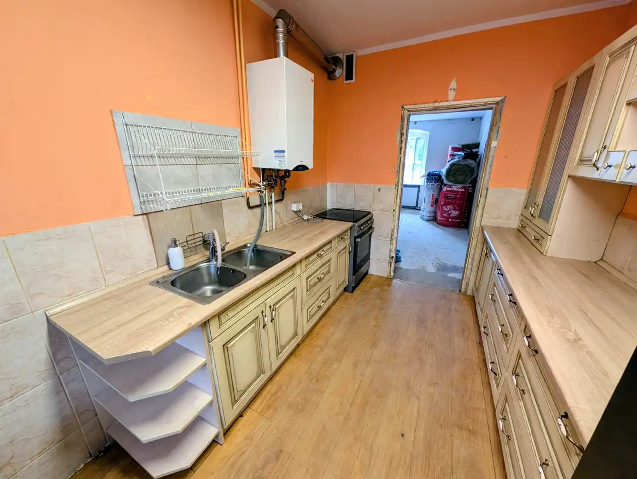 - przechodniej kuchni wyposażonej z sprzęt AGD, meble i dwufunkcyjny piec gazowy,