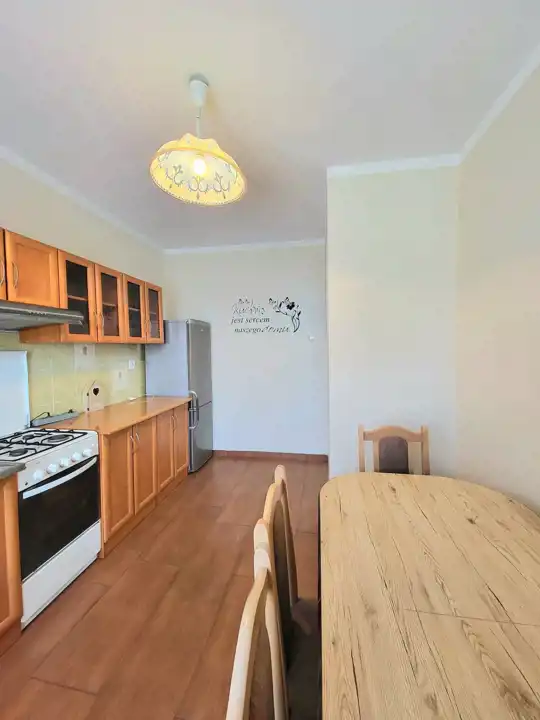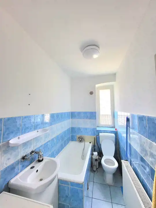 Lokal położony jest na parterze, liczy 38,50 m2 i składa się z dużego salonu, przestronnej kuchni z jadalnią, sypialni, łazienki z wanną i WC, przedpokoju i pomieszczenia gospodarczego. Nieruchomość jest po częściowym remoncie, nowe instalacje, okna PCV.