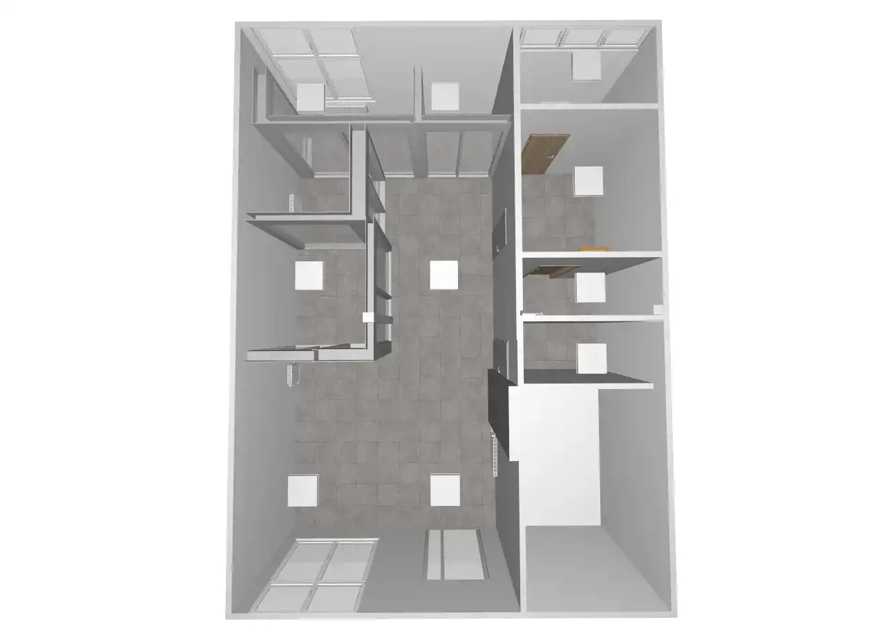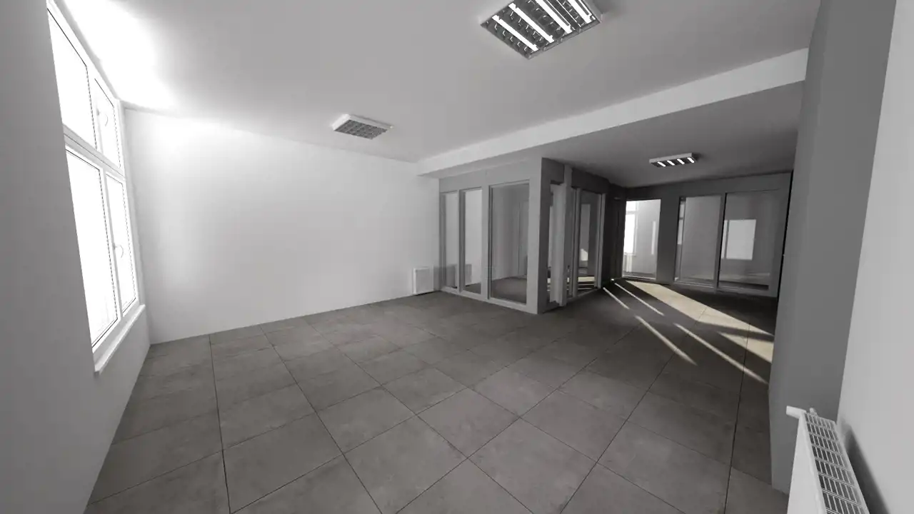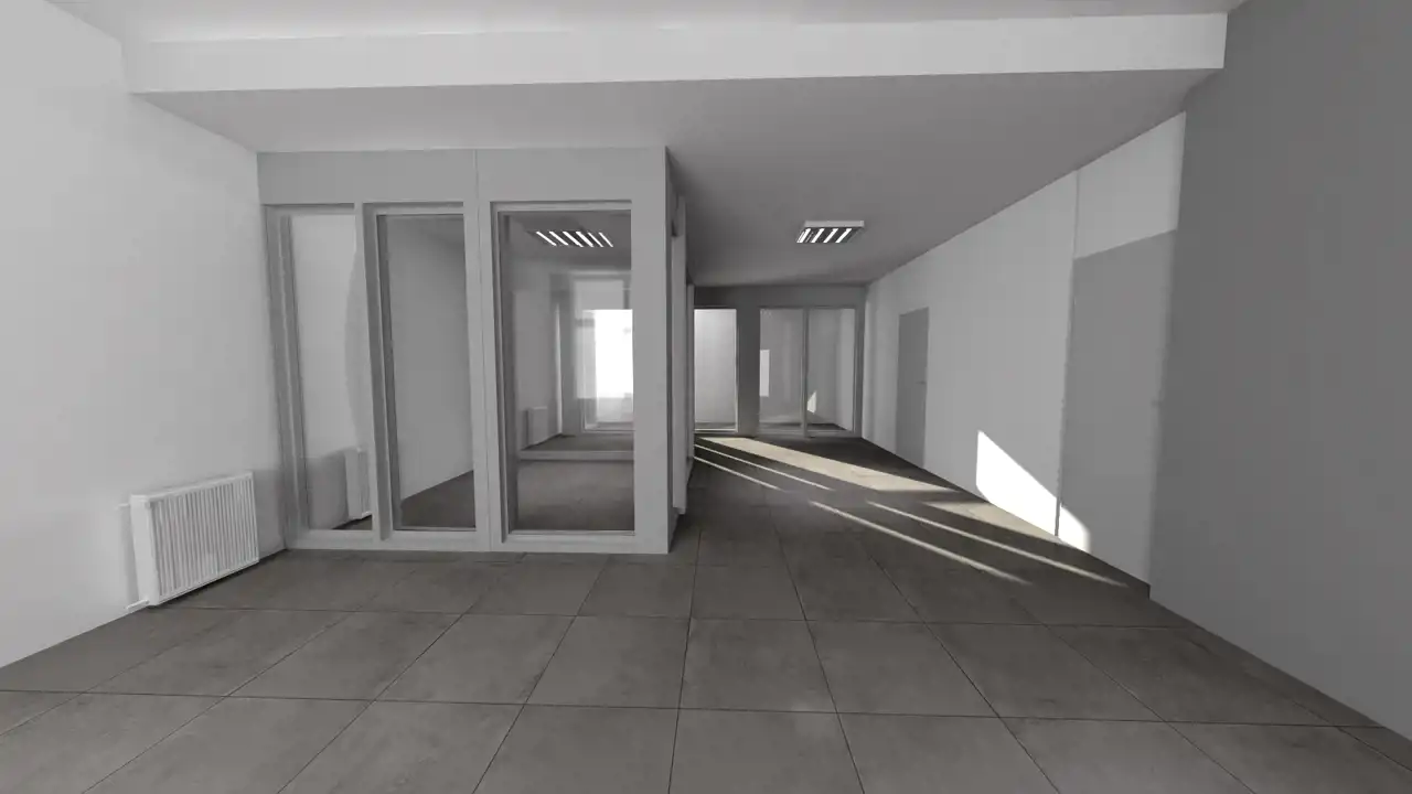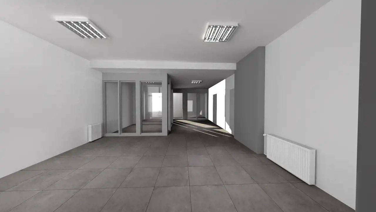 Lokal składa się z otwartej sali sprzedażowej/poczekalni, 4 wydzielonych, przeszklonych pomieszczeń, pomieszczenia socjalnego, toalety i serwerowni.