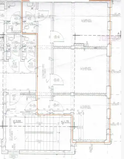 Do wynajęcia powierzchnia biurowa składająca się z trzech pomieszczeń biurowych, kuchni, toalety oraz korytarza na pierwszym piętrze budynku handlowo - usługowego