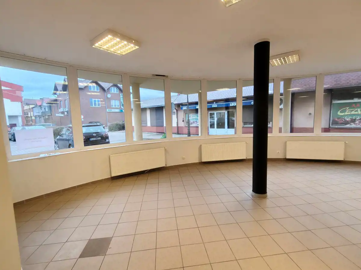 Lokal o pow. całkowitej 179m2, powierzchnia handlowa -137 m2 usytuowany jest na parterze budynku przy naprzeciw marketu Kaufland - pośród licznych punków handlowo – usługowych, banków.