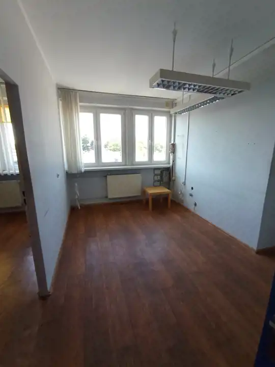 Do wynajęcia powierzchnia biurowa składająca się z siedmiu pokoi oraz toalet na pierwszym piętrze budynku handlowo - usługowego.