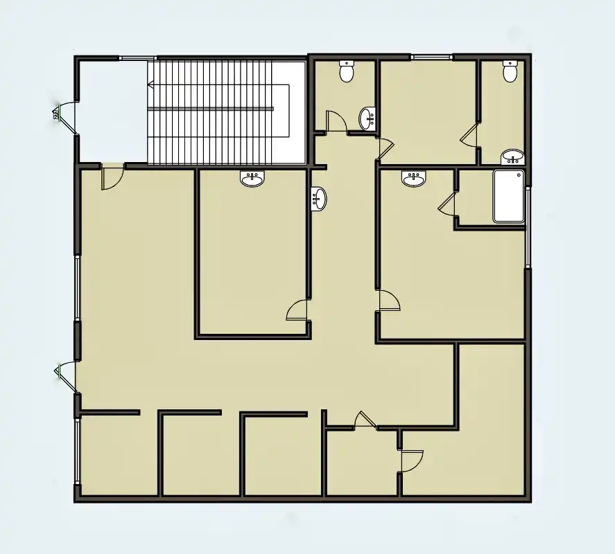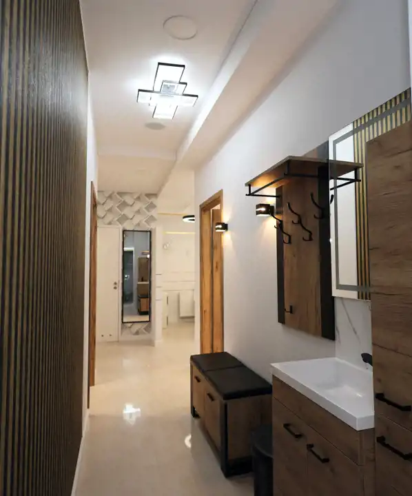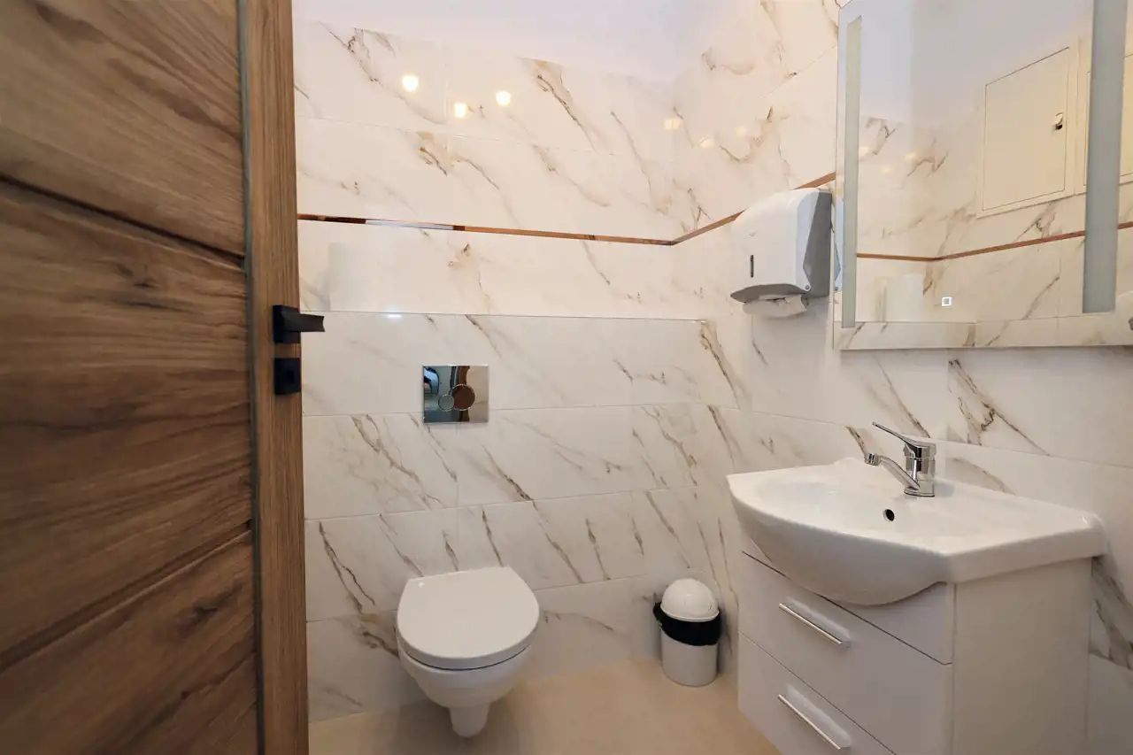 - 5 oddzielnych w pełni umeblowanych pomieszczeń,
