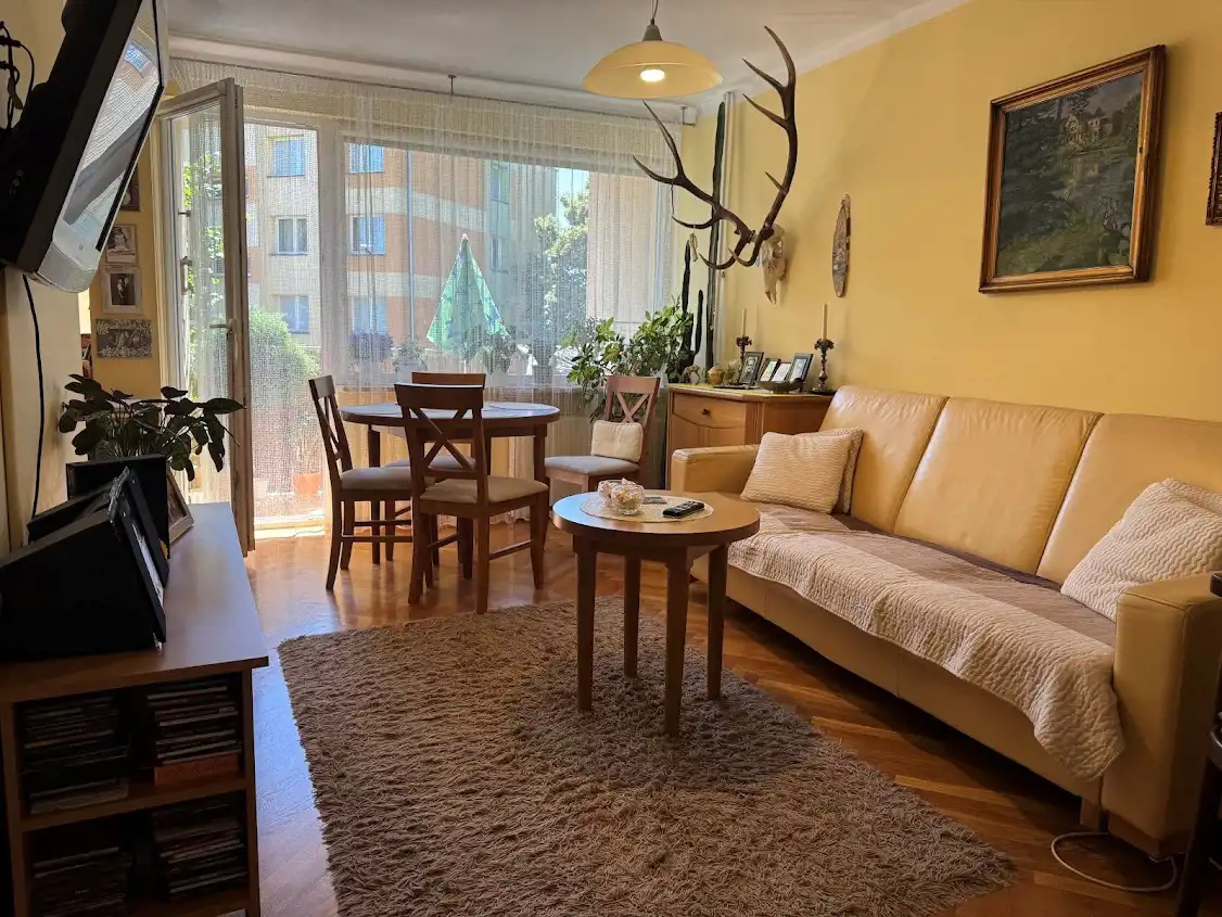 Powierzchnia nieruchomości to 44,35 m2- 3 pokoje, aneks kuchenny, przedpokoj, łazienka, balkon. Mieszkanie bardzo słoneczne. Okna PCV, wymienione drzwi wejściowe. Zabudowa w kuchni meblami na wymiar wraz ze sprzętami (lodówka, zmywarka, płyta gazowa, piekarnik elektryczny). W pokojach znajdują się dwie szafy na wymiar. W salonie gładzie i parkiet drewniany w jodełka. W pokojach i przedpokoju drewniane parkiety w dobrym stanie. Stan nieruchomości do zamieszkania. Do mieszkania przynależy piwnica.