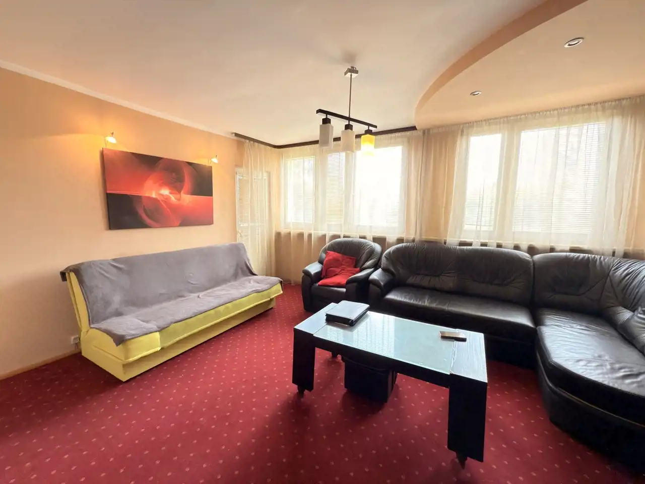 Salon: przestronny, jasny z wyjściem na balkon; umeblowany;