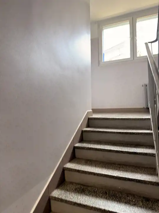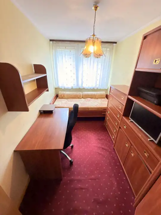Okna PCV, na podłodze wykładzina oraz glazura. Instalacja w większośći wymieniona;