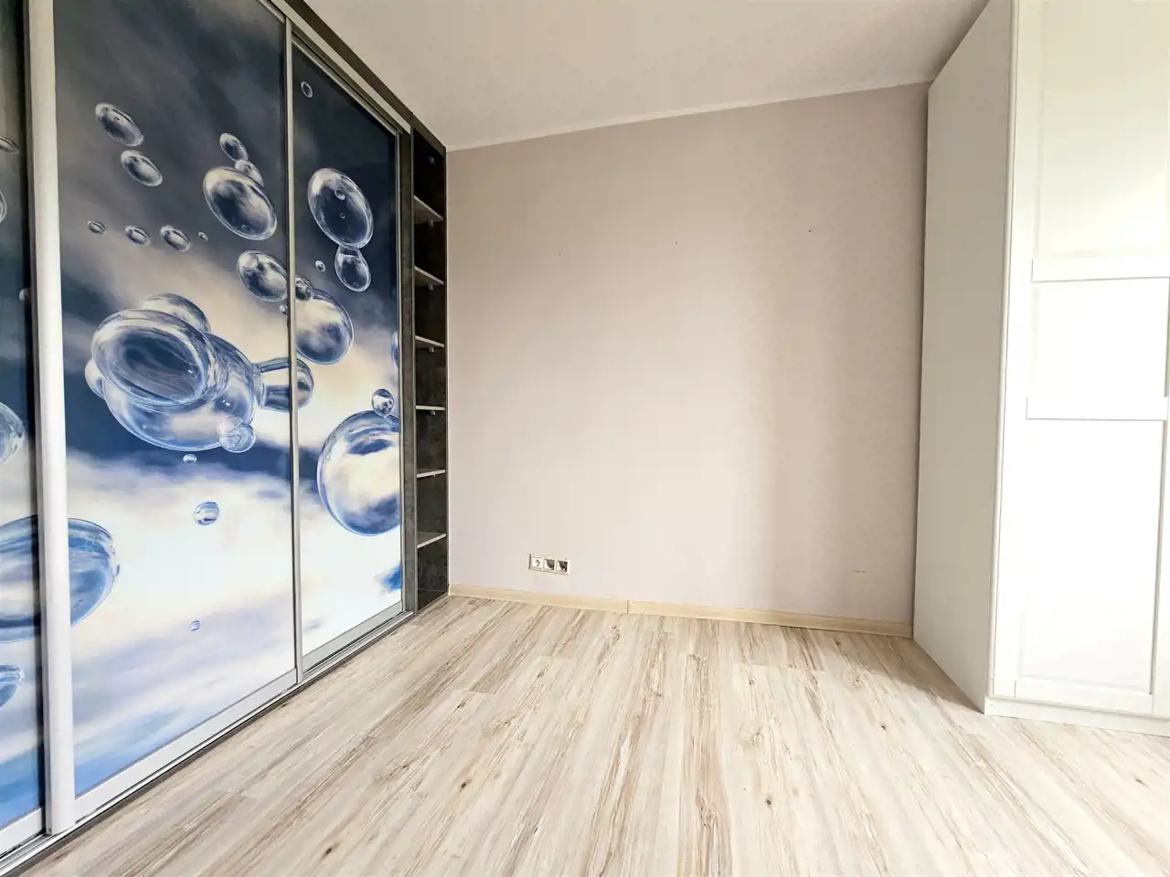 Ściany w gładzi, na podłogach panele oraz płytka gresowa.