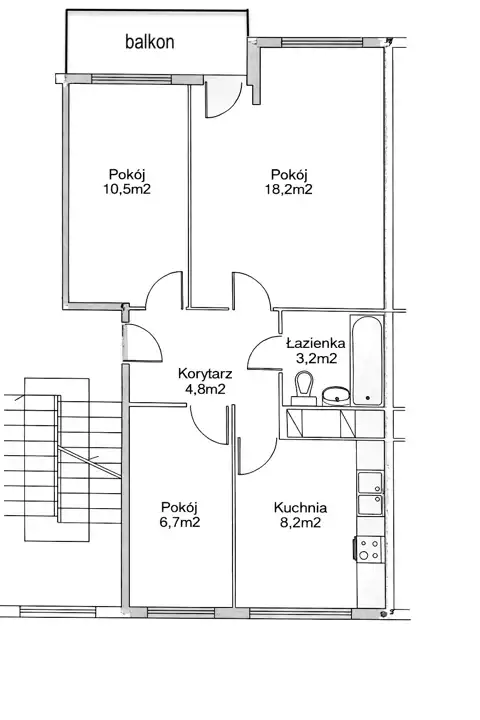 - Charakterystyka mieszkania 51.6 m2, 3 pokoje